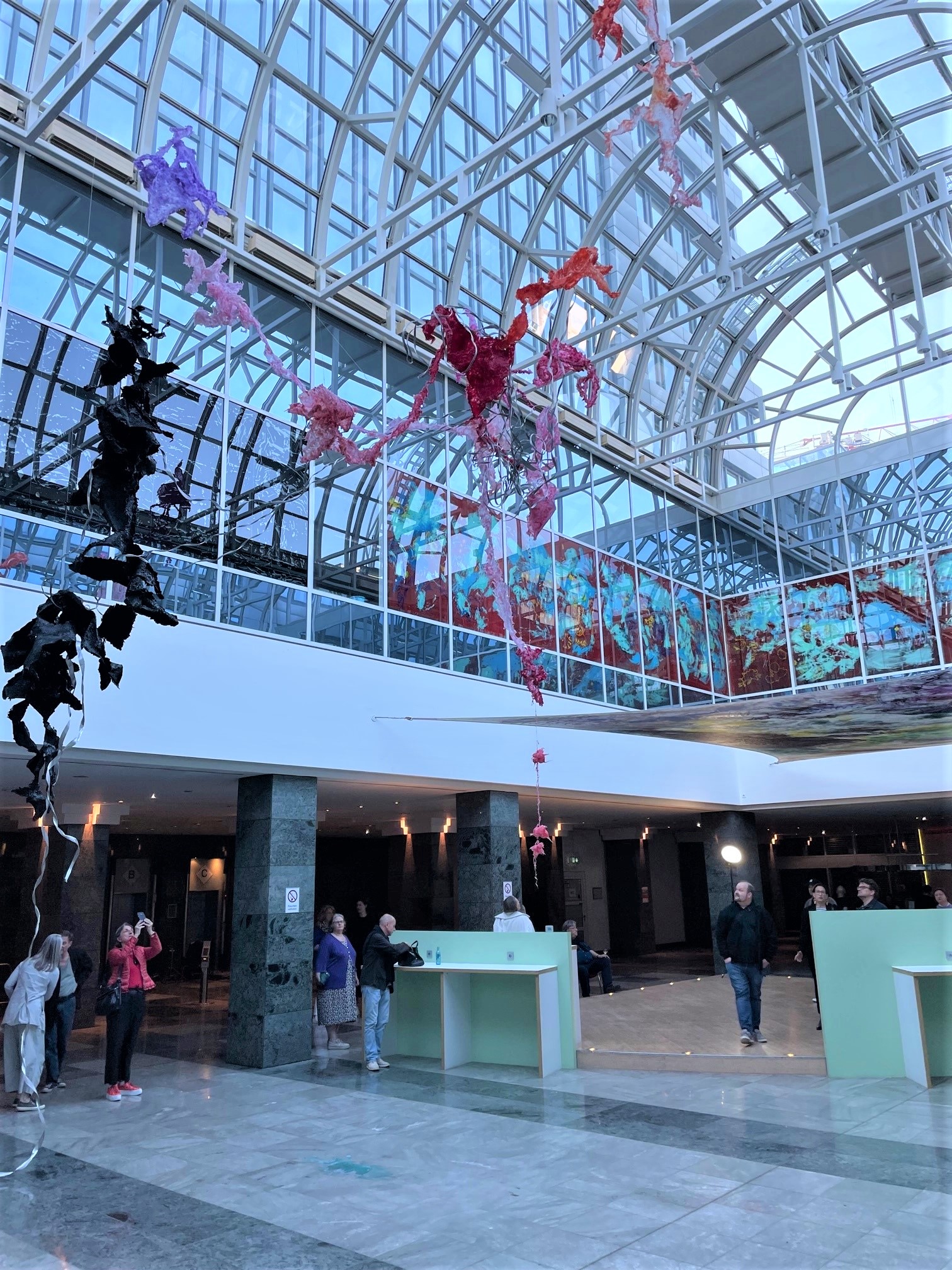 Am 19. Mai fand im Kö-Turm die Eröffnung der Doppel-Ausstellung „volatile floating“ der ukrainischen Künstlerin ALJOSCHA zusammen mit der Künstlerin Andrea Lehnert statt. Bis Anfang Juli ermöglicht der Projektentwickler Catella hier unter dem Namen „Kunstraum Kö“ eine Zwischennutzung. Nach dem Rückbau entsteht hier ein neues Gebäude, der Kö-Tower, für dessen Freiraumplanung inkl. der Dachgärten und Fassadenbegrünung unser Büro verantwortlich ist.