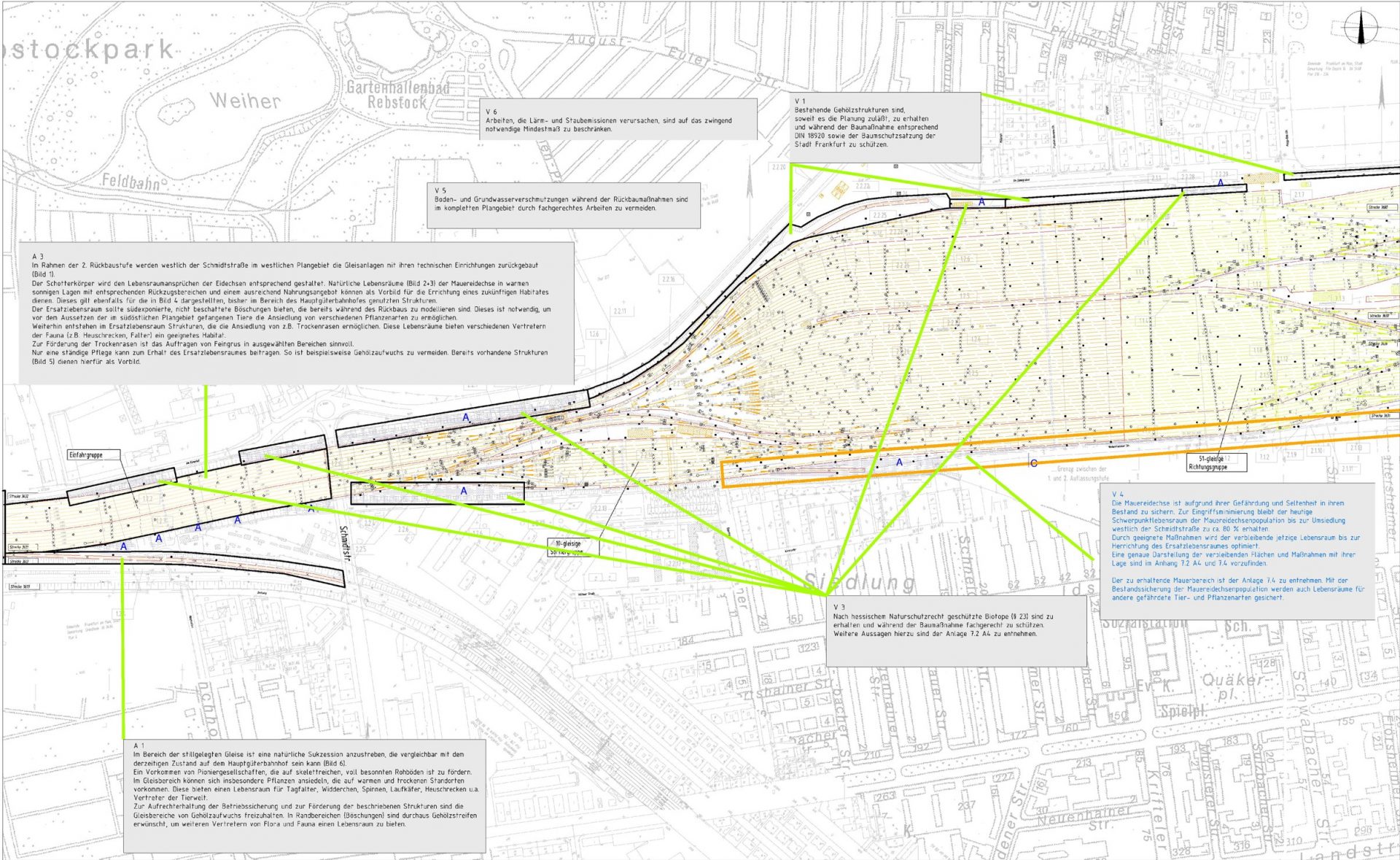 berücksichtigen. Die Planung der artgerechten wie auch zeitlichen Umsiedlung der unter Schutz stehenden Mauereidechsenpopulation an einen geeigneten neuen Lebensraum stellte bei der Projektbearbeitung eine besondere Aufgabe an uns als Landschaftsplaner ebenso wie an die beteiligten Fachplaner, Behörden und das Projektmanagement der Deutschen Bahn.