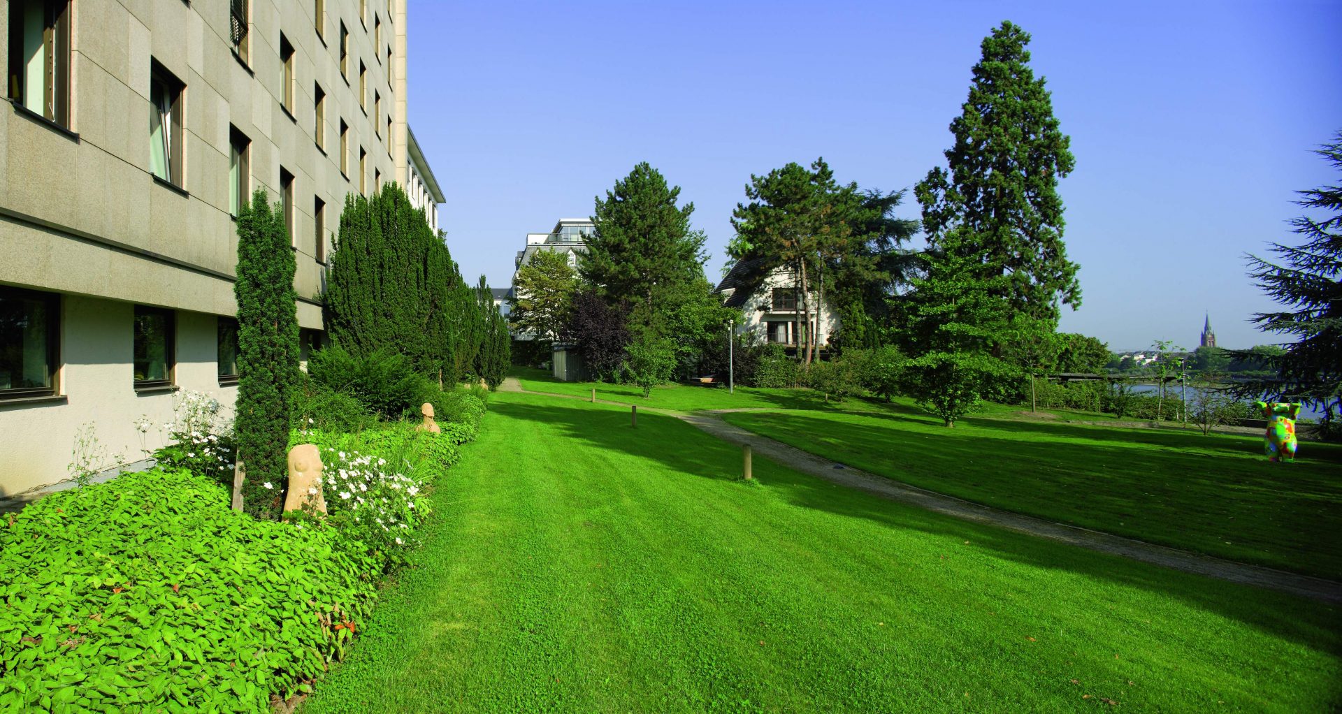 Die Pflanzflächen wurden bereinigt und ausgelichtet, um die Sichtbeziehungen zum Rhein wiederherzustellen. Die vorhandenen Pflanzungen wurden überarbeitet und ergänzt, um wieder ein Gesamtbild zu erzeugen. Neue Parkplätze wurden in die Anlage integriert und mit Bäumen überstellt.