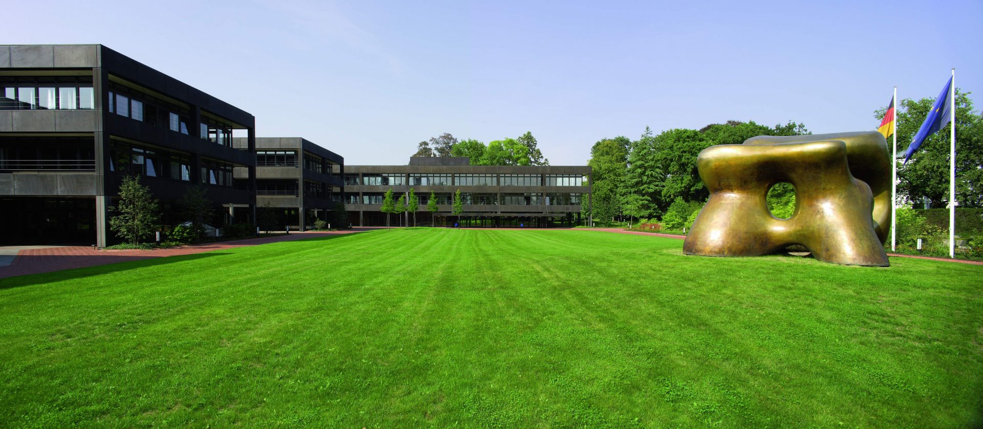 Die Skulptur von Henry Moore auf dem Vorplatz kommt durch die Rasenfläche erneut zur Geltung und kann wieder als beliebtes Fotomotiv verwendet werden.