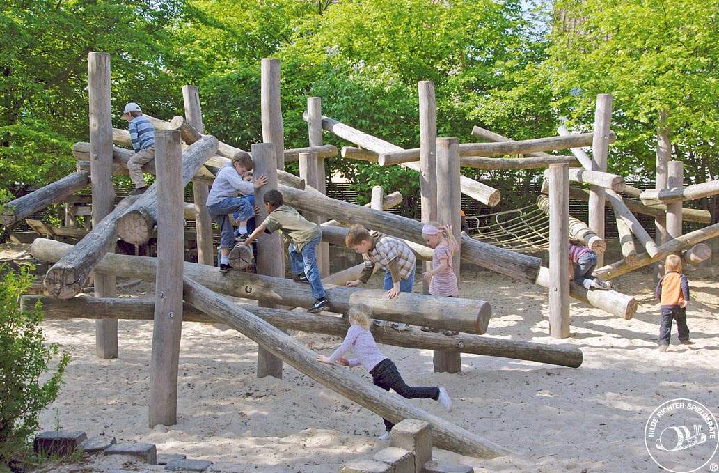 Erschlossen über einen weiten Rundweg aus ungebundener Decke bieten die neuen Patientenhöfe mit jeweils nutzungsbezogenen Gestaltungen, Möglichkeit zum Verweilen und Erholen im Freien. Dabei „zog“ ein Spielplatz, neu strukturiert, in den angrenzenden Park um. Der mittlere Hof 3, erschlossen durch eine behindertengerechte Rampenanlage und Treppenanlagen erhielt eine therapeutische Gehschule mit Kiesen, Splitten und Rindenmulch.