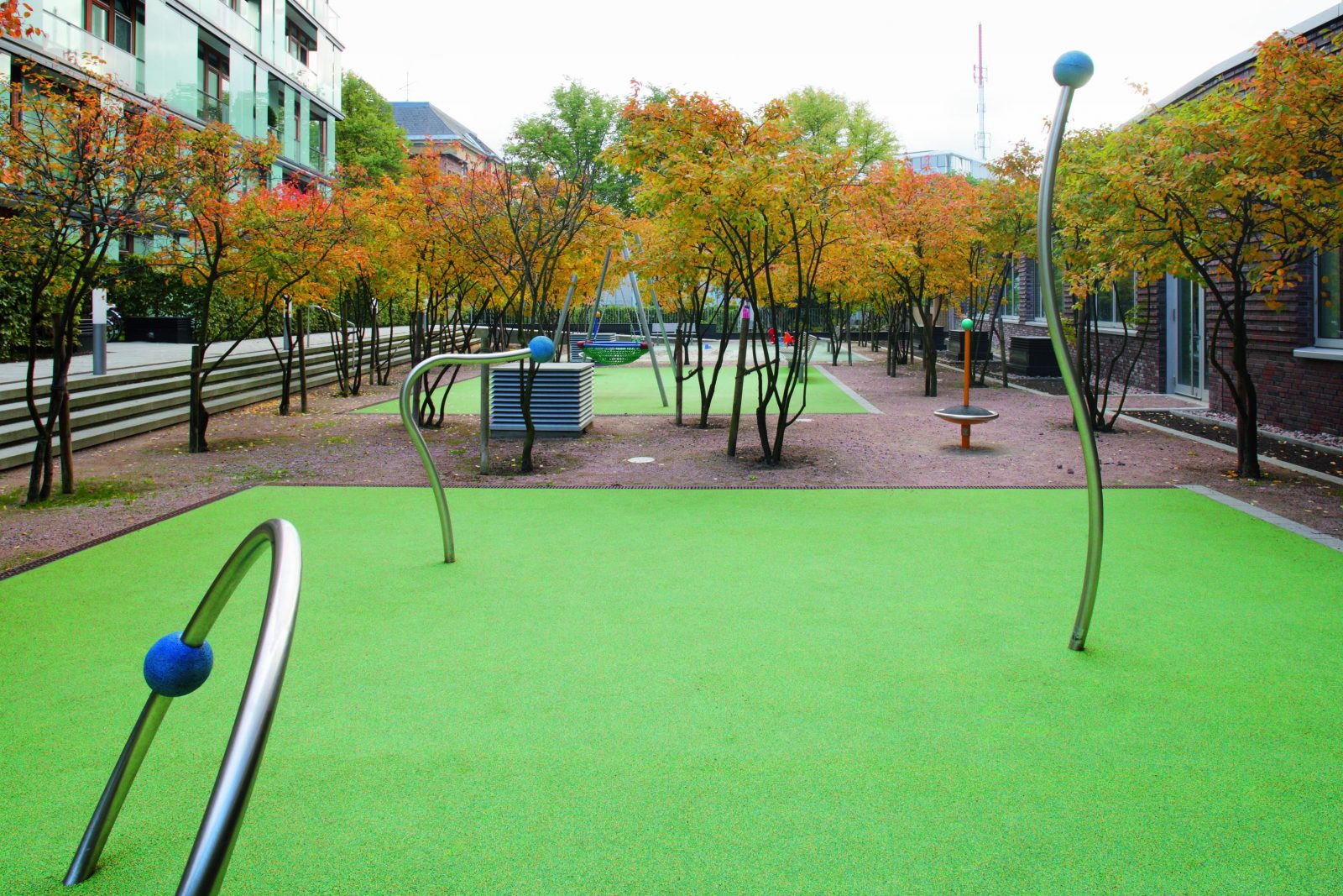 Alle Flächen sind mit den gleichen einfachen und industriell anmutenden Leuchten ausgestattet. Die Solitärbäume werden einzeln und auch farbig angestrahlt. Das Baumdach auf der zentralen Piazza wird als Lichtwald inszeniert.