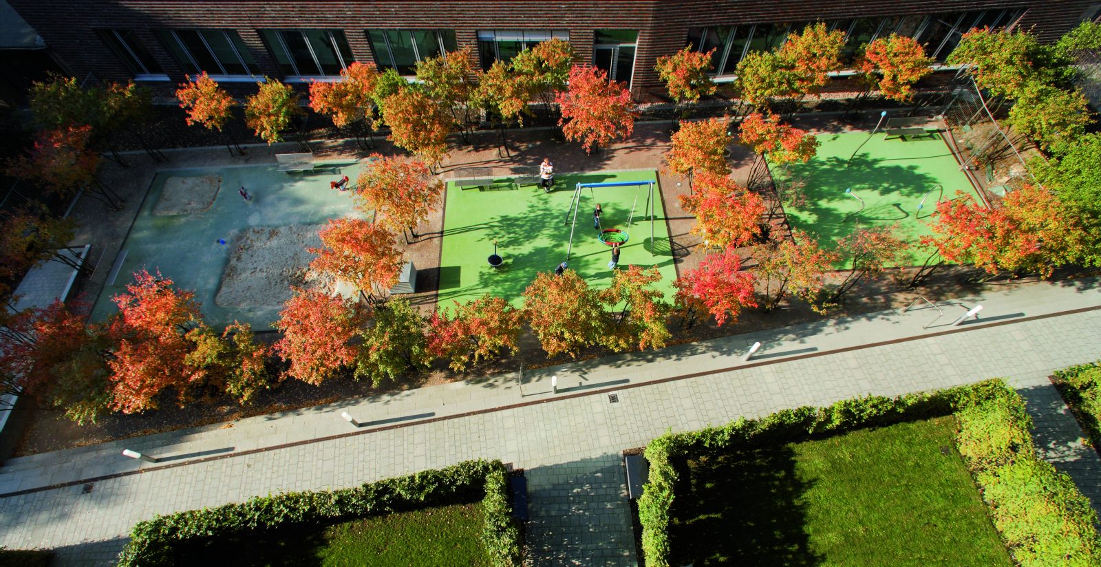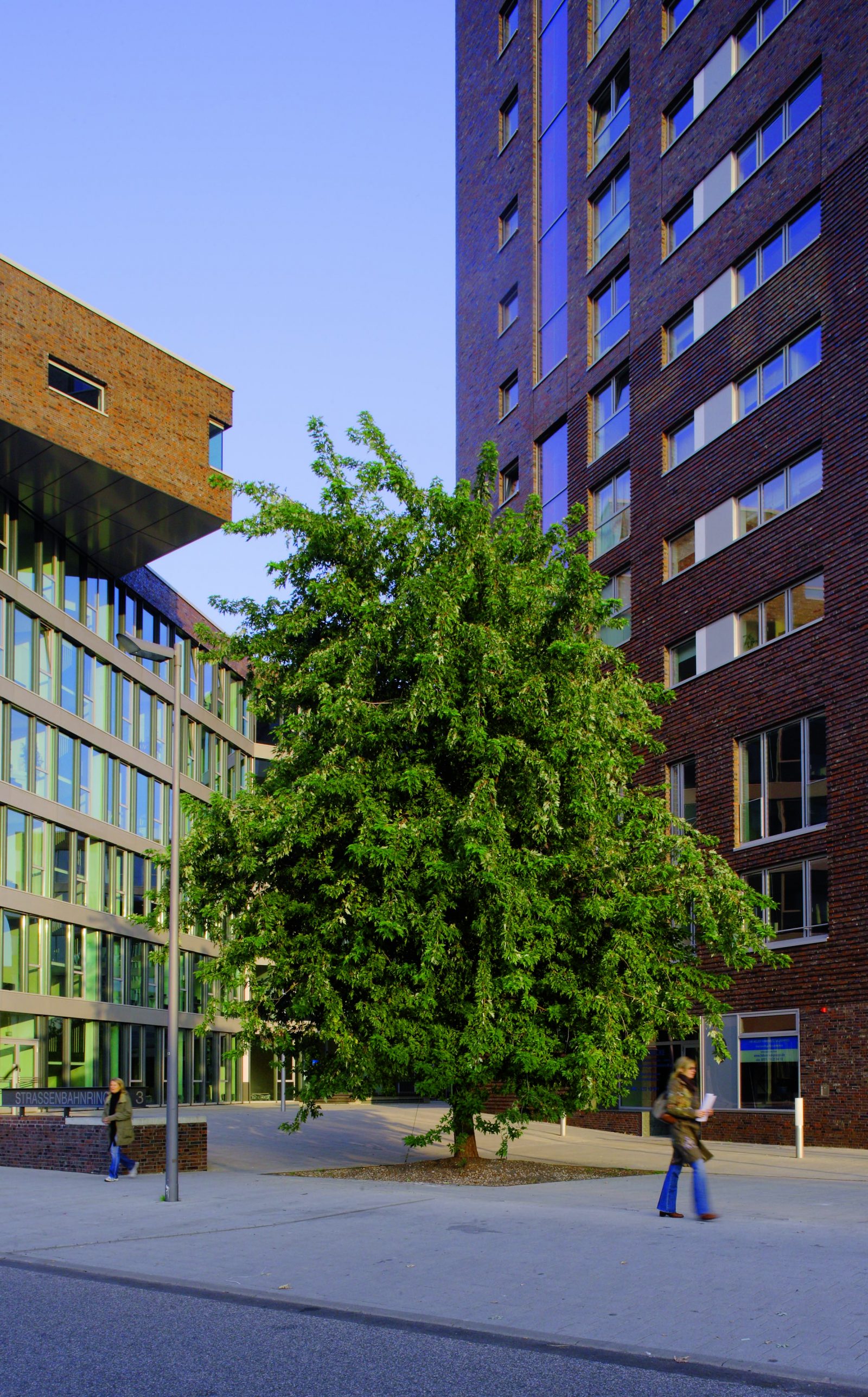 Im gesamten Gebiet verwenden wir eine einzige Baumart: Ahorn in unterschiedlichen Arten als Solitär-strauch und Solitärbaum. Je nach Ort – Platz, Straße, Allee, Hof, Garten – ist der Ahorn als lose Gruppe, Reihe, Block oder einzeln angeordnet. Unterschiede werden außerdem durch die verschiedenartigen Blüten und die Herbstfärbung deutlich.