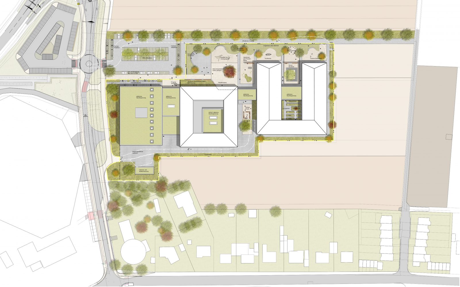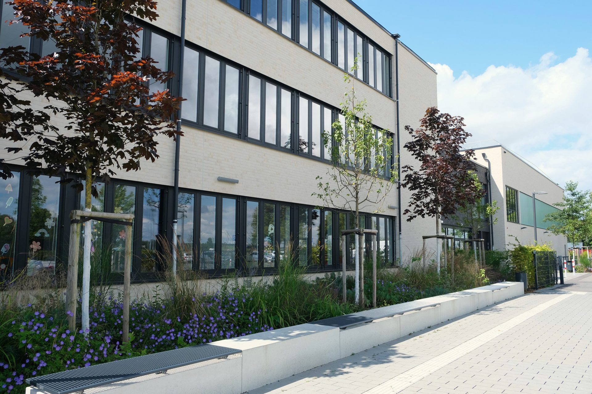 Das Freianlagenkonzept am geplanten Schulneubau in Kaarst-Büttgen zeichnet sich durch eine konsequent an den Funktionen ausgerichtete Gestaltung aus, die sich insbesondere an die Raumaufteilung des Neubaus anlehnt. So entstehen „Grüne Klassenzimmer“ mit direktem Bezug, wie z. B. das Musikzimmer.