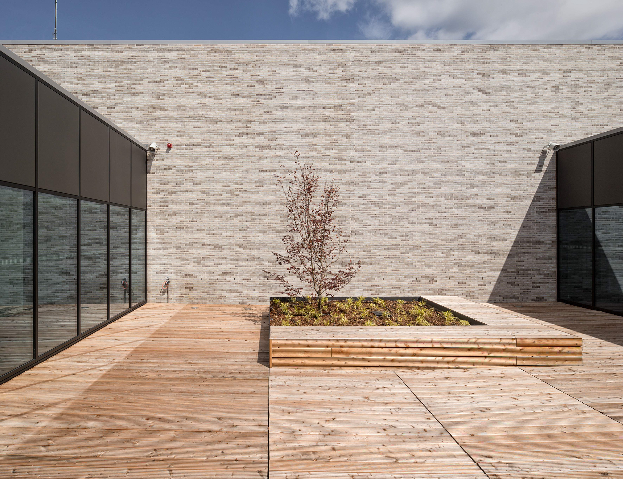 Verschiedene Ahornarten strukturieren dabei den Campus, den Parkplatz sowie die Zufahrten. Die Dachflächen werden extensiv begrünt.