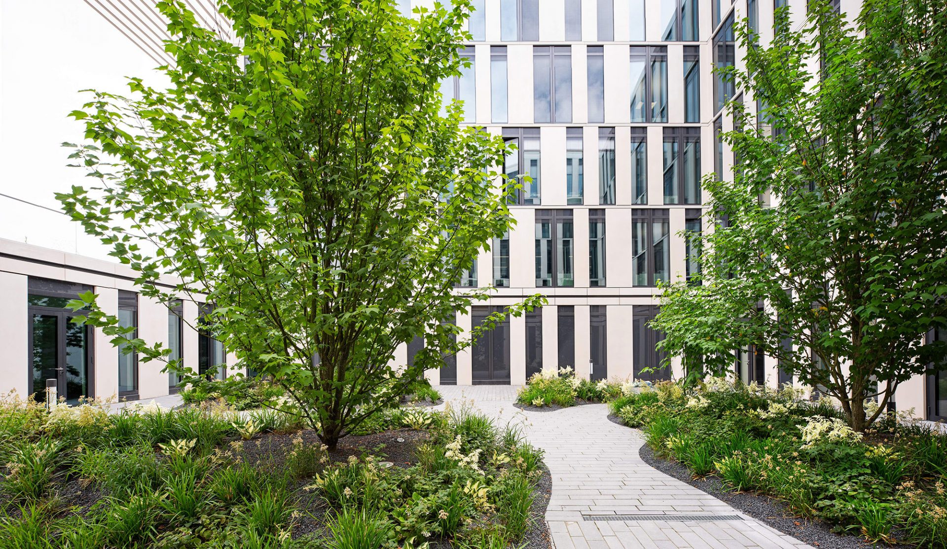 Einer der wesentlichen Aspekte der Architektur des Gebäudes ist die Öffnung zum Landschaftsraum der Aue hin. Diese Idee wird im Außenbereich weiter konsequent fortgeführt. Der Nuthepark wird zukünftig mit den Grünflächen der ILB verschmelzen. Auf jede Art von Einfriedungen und Sichtschutzelemente wird verzichtet. Dadurch kann jeder Mitarbeiter beim Blick aus dem Fenster die Parkanlage genießen.