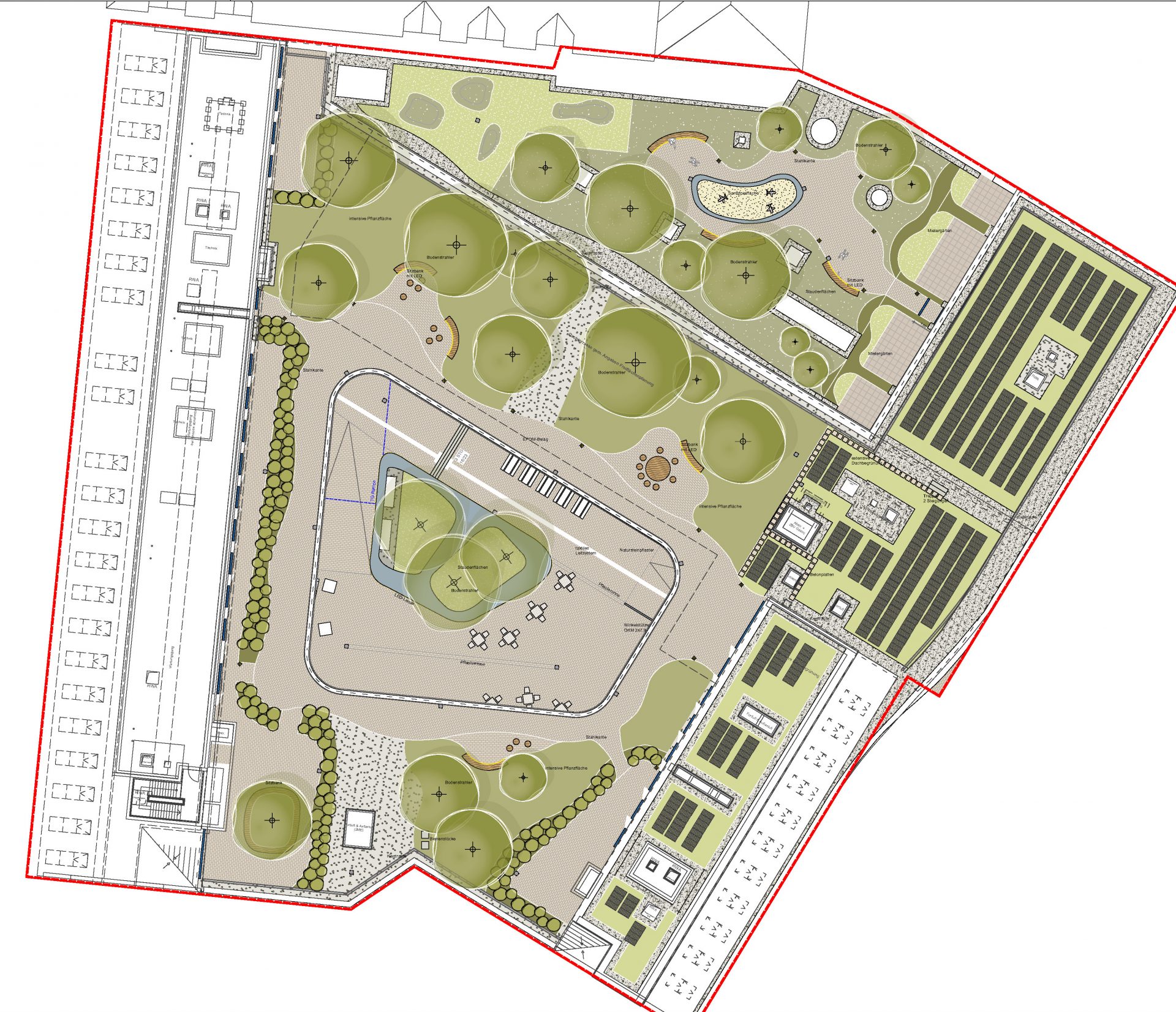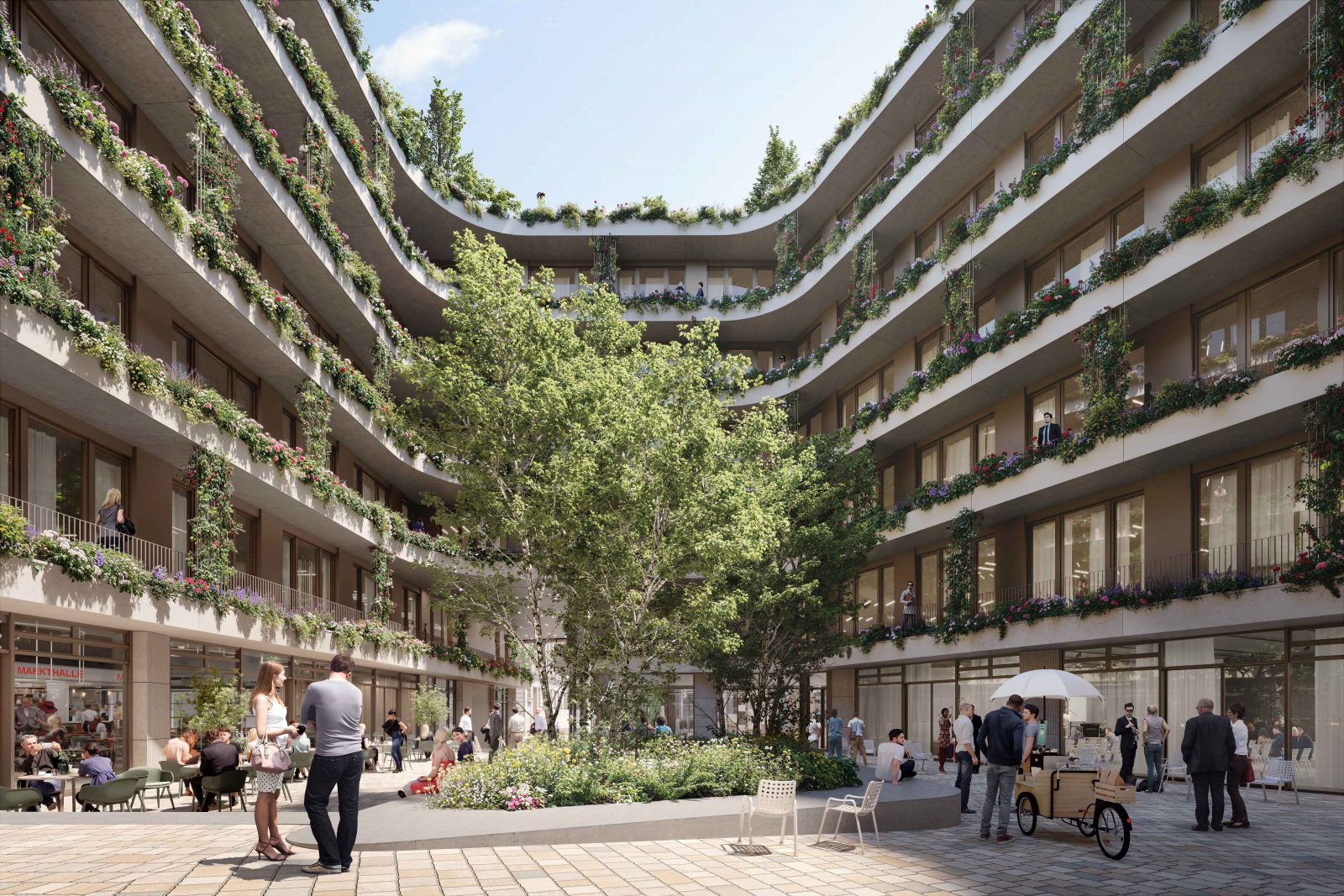 Das Konzept für KarLa sieht eine markante, teils begrünte Fassaden vor, die ein angenehmes Klima zum Wohnen und Arbeiten in der Stadt erzeugt. Auf jeder Seite spricht eine Passage mit sanftem Rückschwung eine Einladung in den öffentlich zugänglichen grünen Innenhof aus.