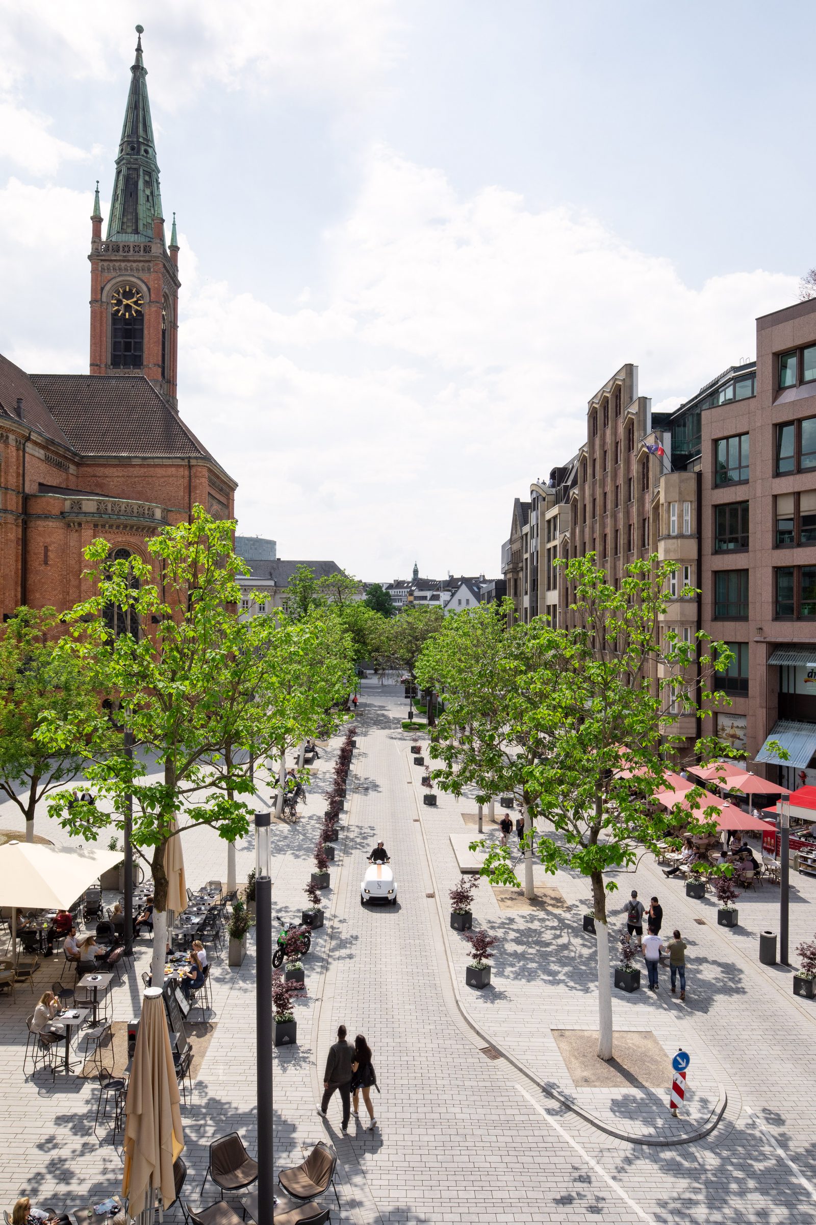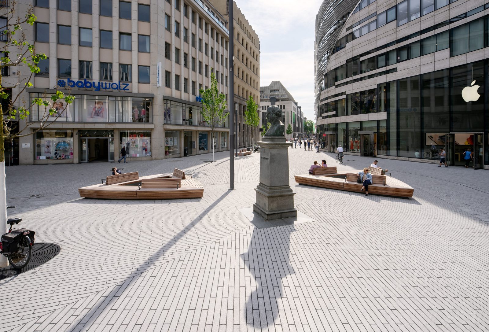 Eine der wichtigsten Einkaufstraßen Deutschlands wird wieder entsprechend ihrer Bedeutung gestärkt und neu inszeniert. Die so wichtige West-Ost-Achse im Herzen der Stadt Düsseldorf ist zugleich eine der umsatzstärksten und meistbesuchten Flaniermeilen. Mit der Entfernung der Zäsur durch die Hochstrasse und ihrer Neugestaltung entsteht wieder eine zusammenhängende Einkaufsstraße zwischen Altstadt und Wehrhahn. Die Schadowstraße ist das neue, alte Rückgrat dieses Teils der Innenstadt.