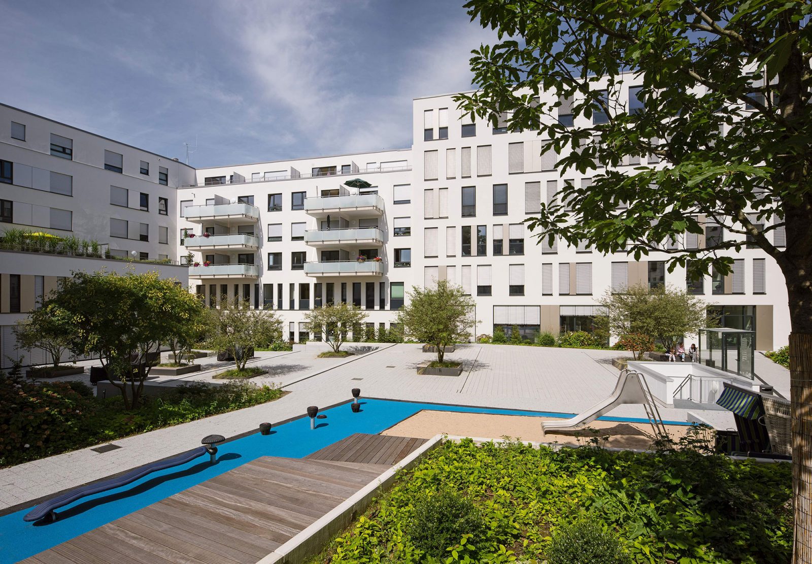 Neben 44 Wohneinheiten und einem Bürogebäude mit Kundenzentrum der Allbau werden ein Haus der Begegnung und ein Café errichtet.