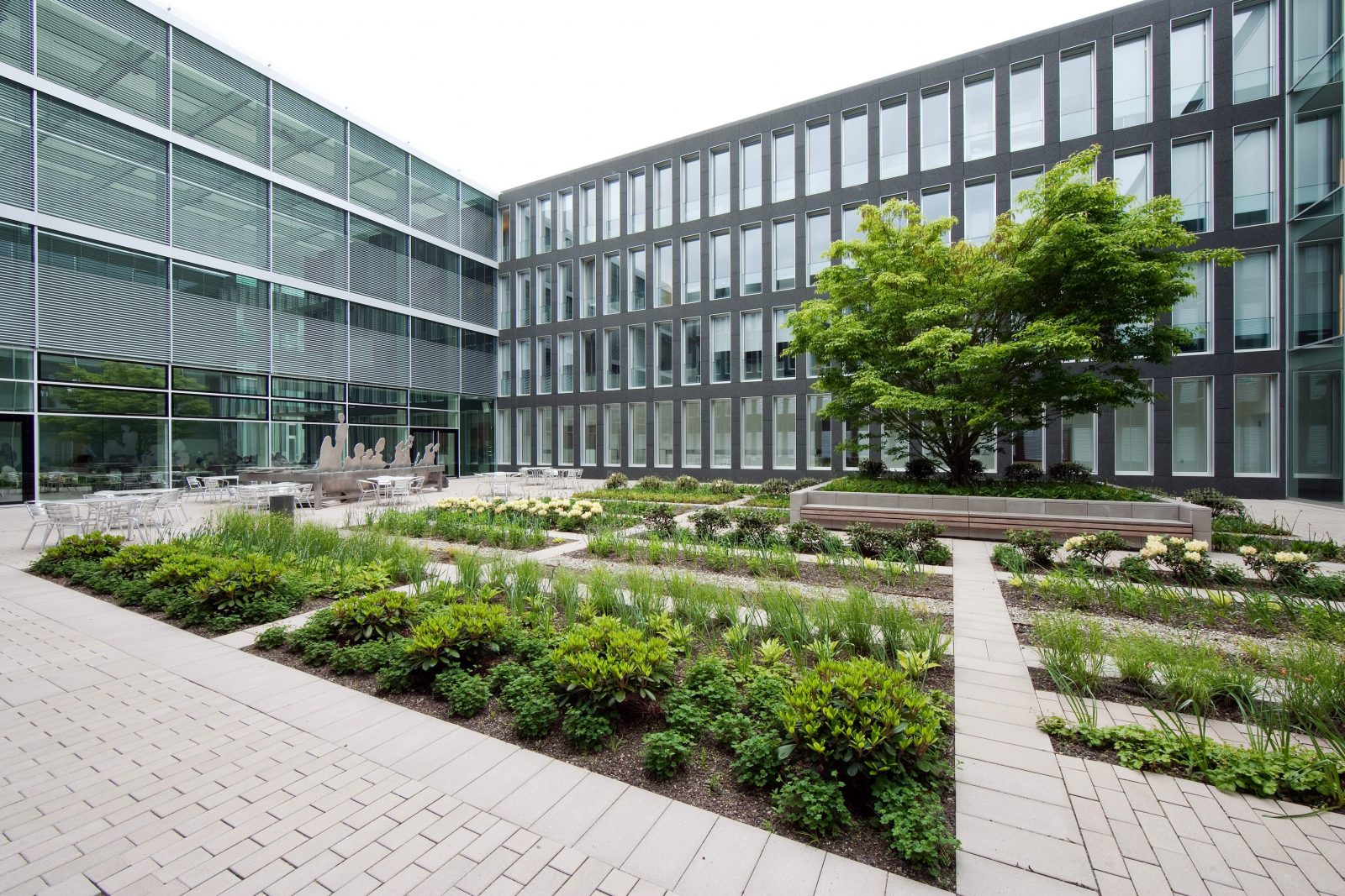 Die Fassadengestaltung der Landessparkasse zu Oldenburg folgt einem orthogonalen Ordnungsprinzip. Bei der Freiflächengestaltung haben wir uns an dieses architektonische Muster gehalten – und es mit der Freiflächengestaltung fortgesetzt.