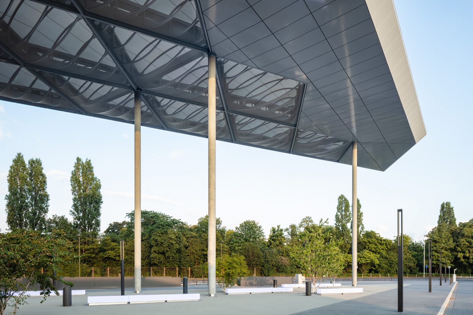 Der Eingangsbereich der neuen Messehalle 1 und des CongressCenterDüsseldorf gliedert sich in zwei Bereiche: Der nordöstliche Teil befindet sich unter dem neu entstehenden Vordach und liegt zum größten Teil über der geplanten Tiefgarage. Der südwestliche Teil besteht hauptsächlich aus dem neu angelegten Parkplatz und dem Vorplatz des Eingangs zum CCD.