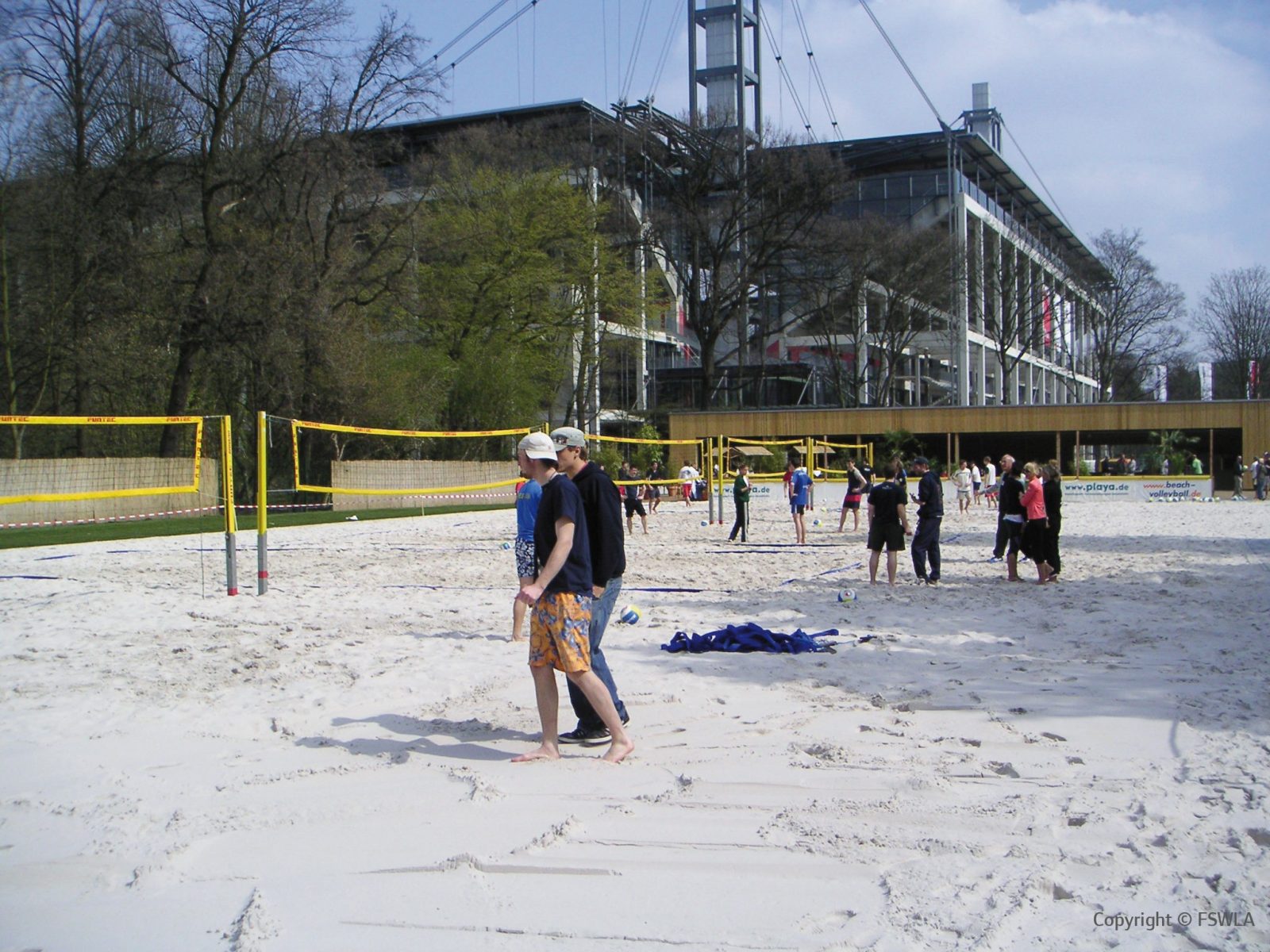 Die drei Bauteile sind um die zentrale Beachvolleyballanlage mit sechs Aussenspielfeldern angeordnet. Das Bauteil A beinhaltet ein Sportinstitut mit Büro und Seminarräumen, Bauteil B vom Betreiber „Playa“ genutzt nimmt die Verwaltungs- und Nebenräume, Gastronomie und Umkleiden mit Nasszellen auf. Das Bauteil C ist eine dreiseitig geschlossene Überdachung für Veranstaltungen der „Playa“, das durch einen mobilen Vorhang wetterunabhängig geschlossen werden kann.