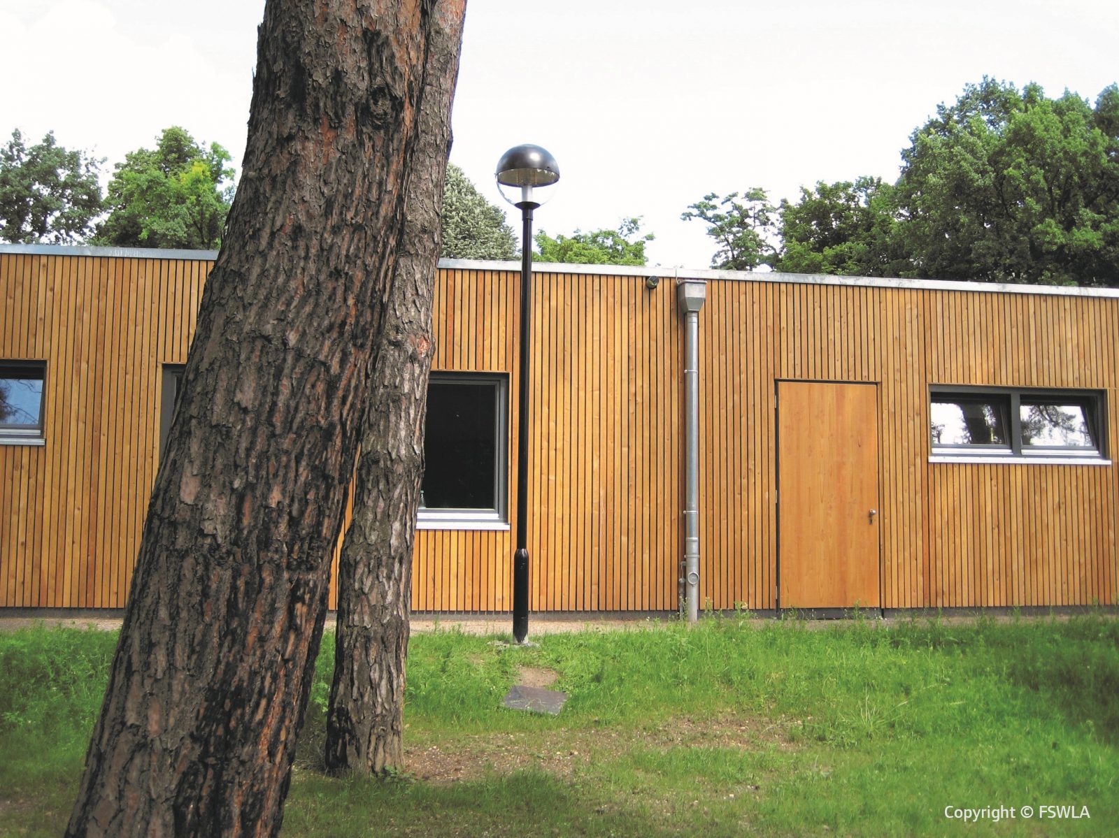 Sowohl dem Institutsgebäude als auch der „Playa“ sind eigene Parkplätze und Fahrradparker zugeordnet. Das Oberflächen- und Dachwasser wird durch eine Rigolenversickerung unter einem Parkplatz versickert. Der Baumbestand entlang der Junkersdorfer Strasse wird soweit wie möglich erhalten und in die Planung integriert. Die übrigen Aussenanlagenflächen werden mit Rasen hergestellt und locker mit Eichen- und Ahornbäumen überstellt.