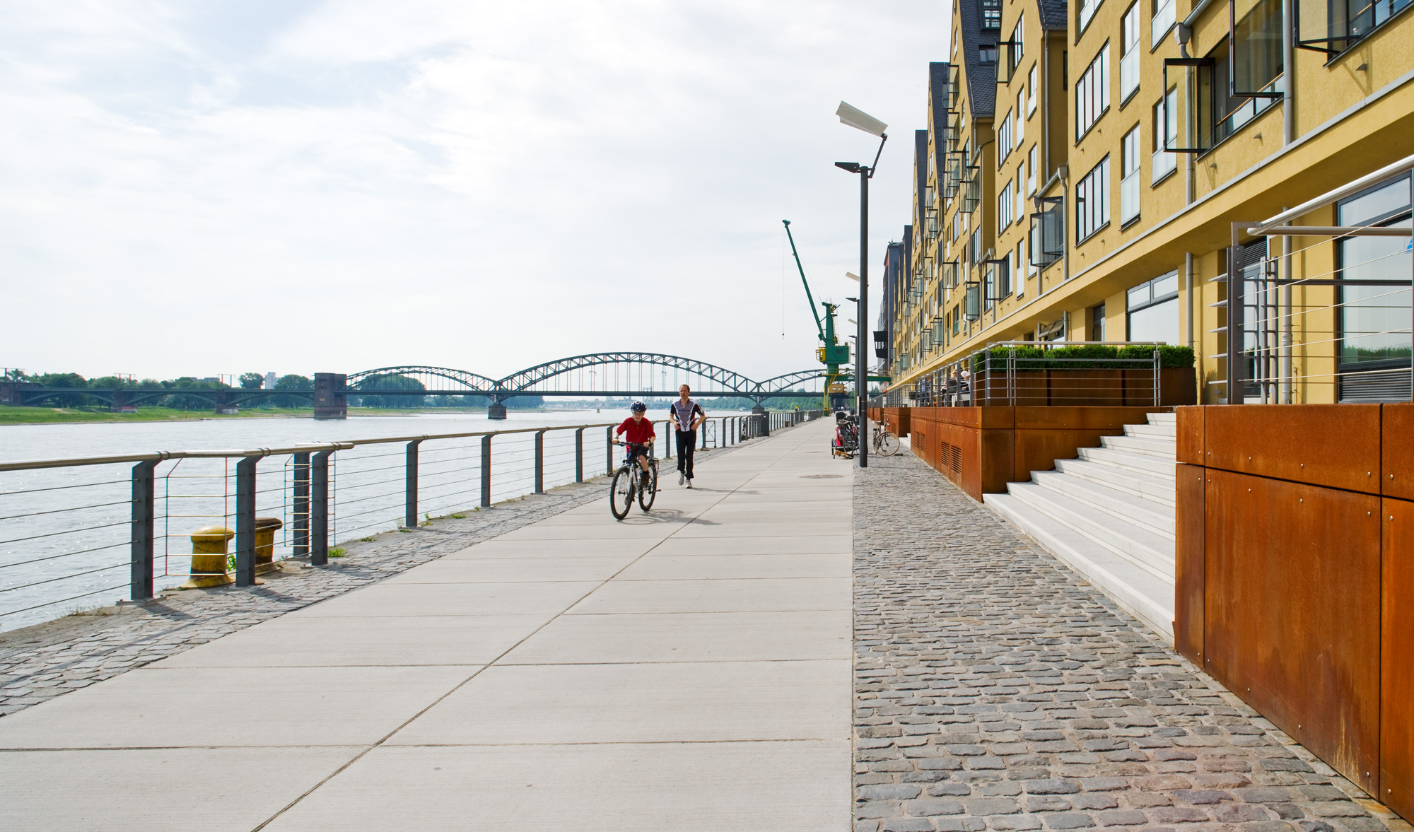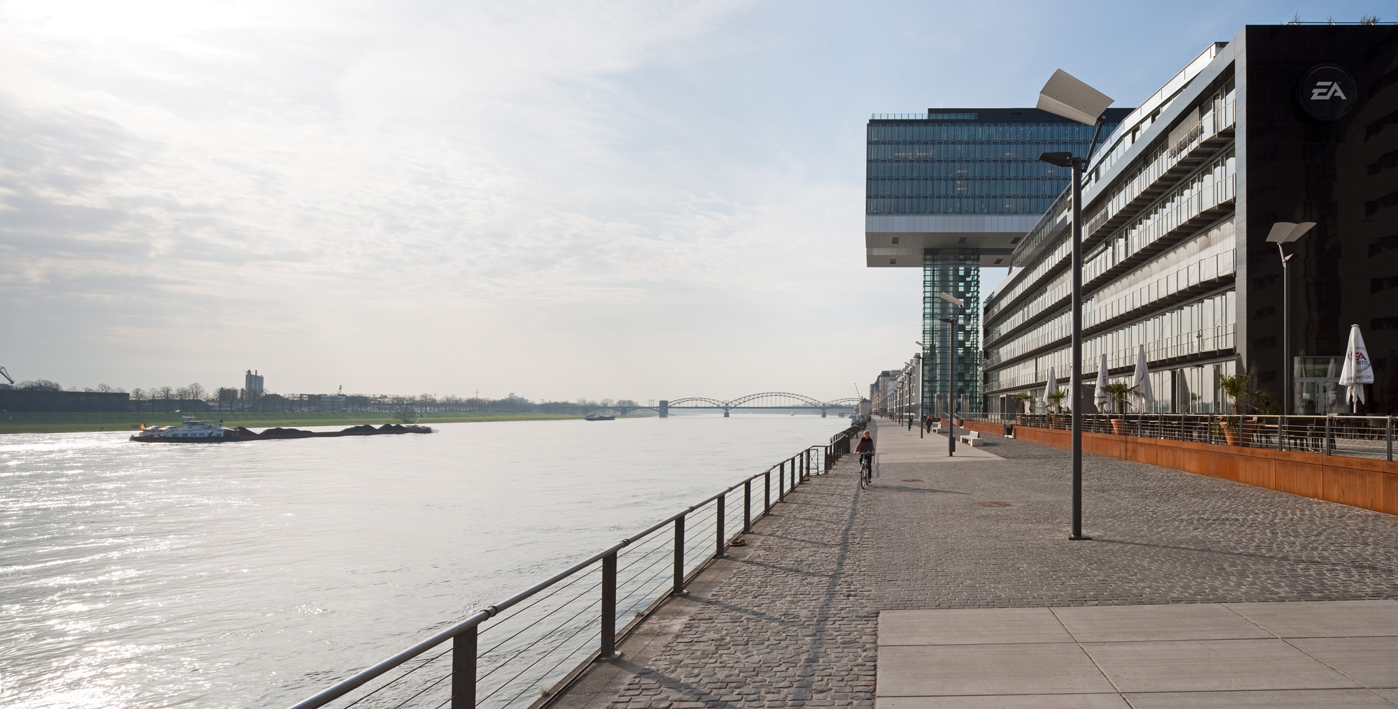 Im Rahmen der Neuordnung des Kölner Rheinauhafens gewann unser Büro im Jahr 1999 den Freiraumwettbewerb und wurde mit der Planung beauftragt.