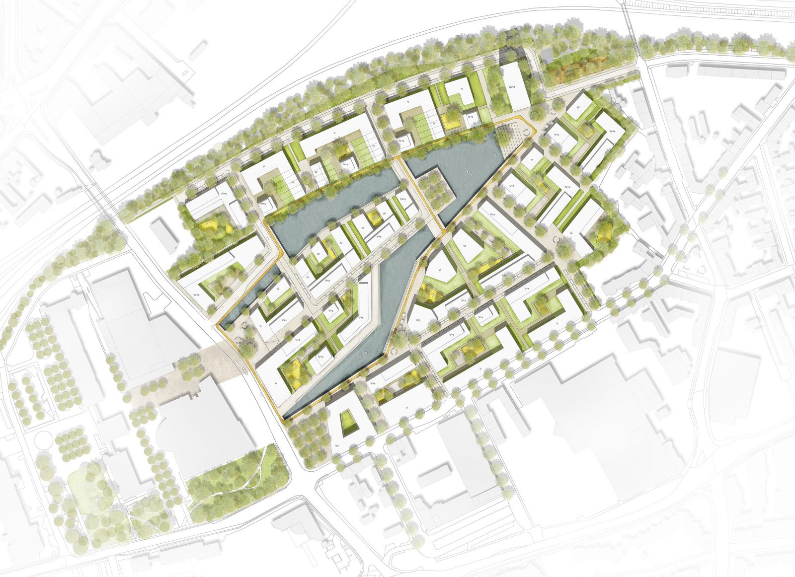 Die Joggingstrecke durchzieht von Anfang an den Raum und bleibt auch später Bestandteil des Quartiers.
