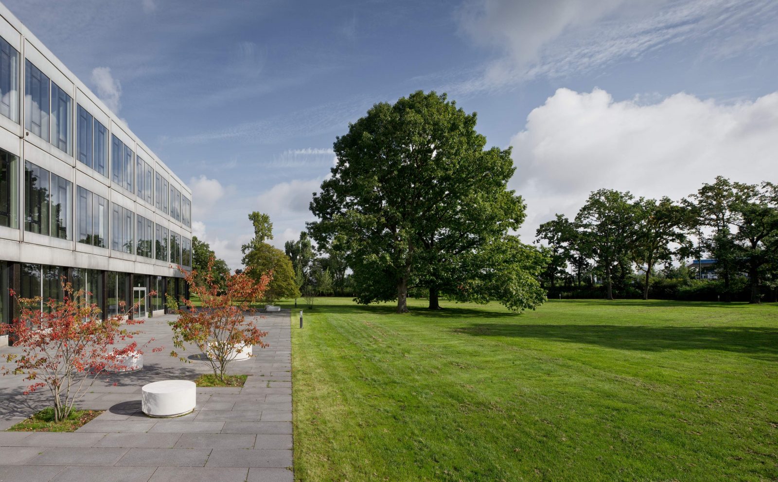 Park und Gebäude liegen im Winkel einer seesternförmigen Straßenkreuzung. In den frühen 60er Jahren stand die Horten-Hauptverwaltung als erstes Solitärgebäude in der freien Landschaft. Bis heute wurde der Büropark „Am Seestern“ immer weiter ausgebaut und ergänzt. Der hier vorliegende Entwurf zeigt, wie aus dem in die Jahre gekommenen denkmalgeschützten Gebäudeensemble wieder eine erste Adresse werden kann.