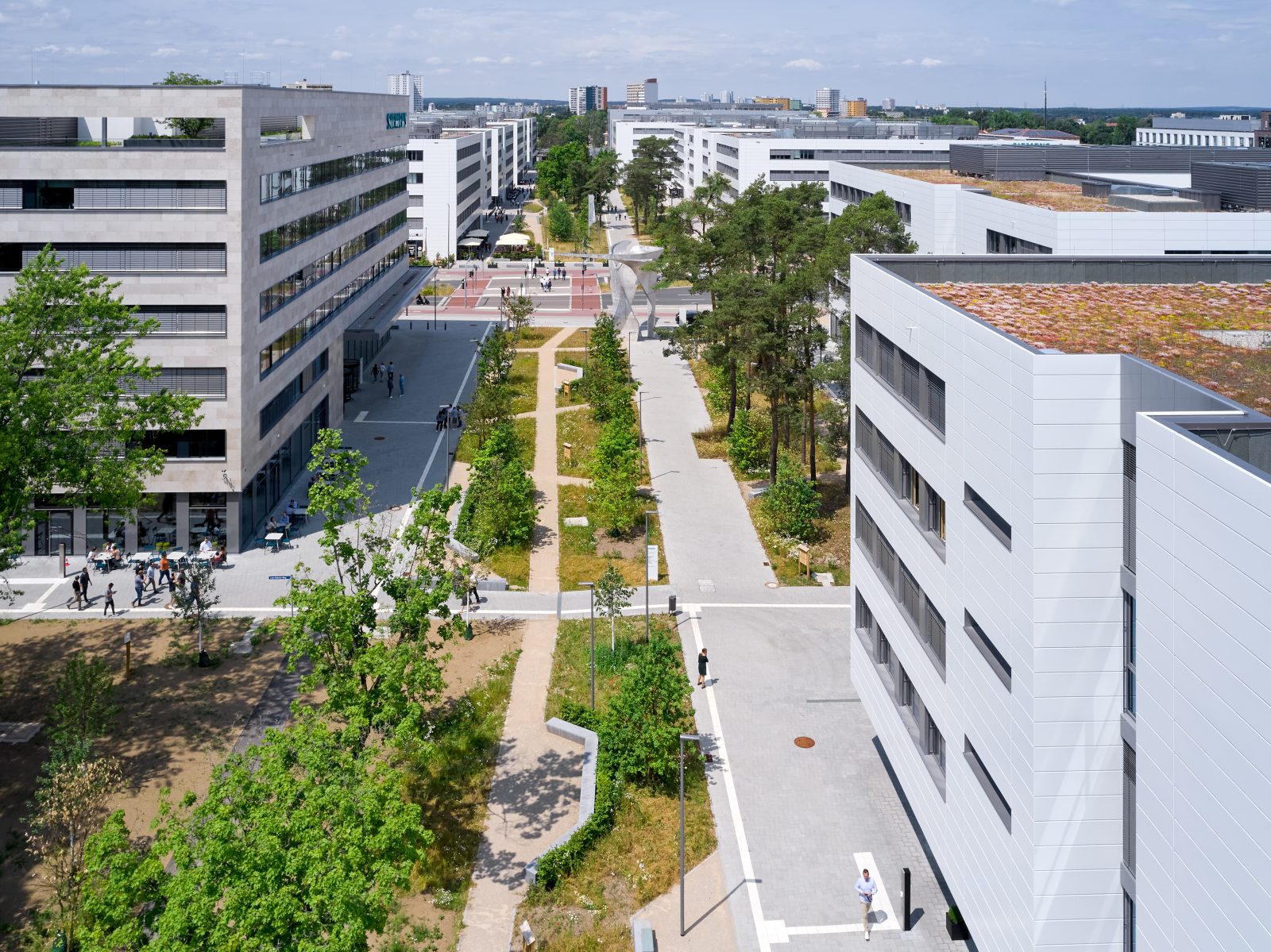 Neben der städtebaulichen Gestaltung kommt insbesondere dem Freiraum eine besondere Bedeutung zu. Durch die Ausbildung unterschiedlicher Grünachsen und deren Vernetzung entsteht ein neuer ganzheitlicher Grünraum mit hohem ökologischem Potenzial. Der Außenraum wird im neuen Campus zum zentralen Erlebnisraum und dient nicht nur der Vernetzung und dem Aufenthalt, sondern ist zugleich auch ein Ort der Kommunikation, des Spiels und der Erholung.