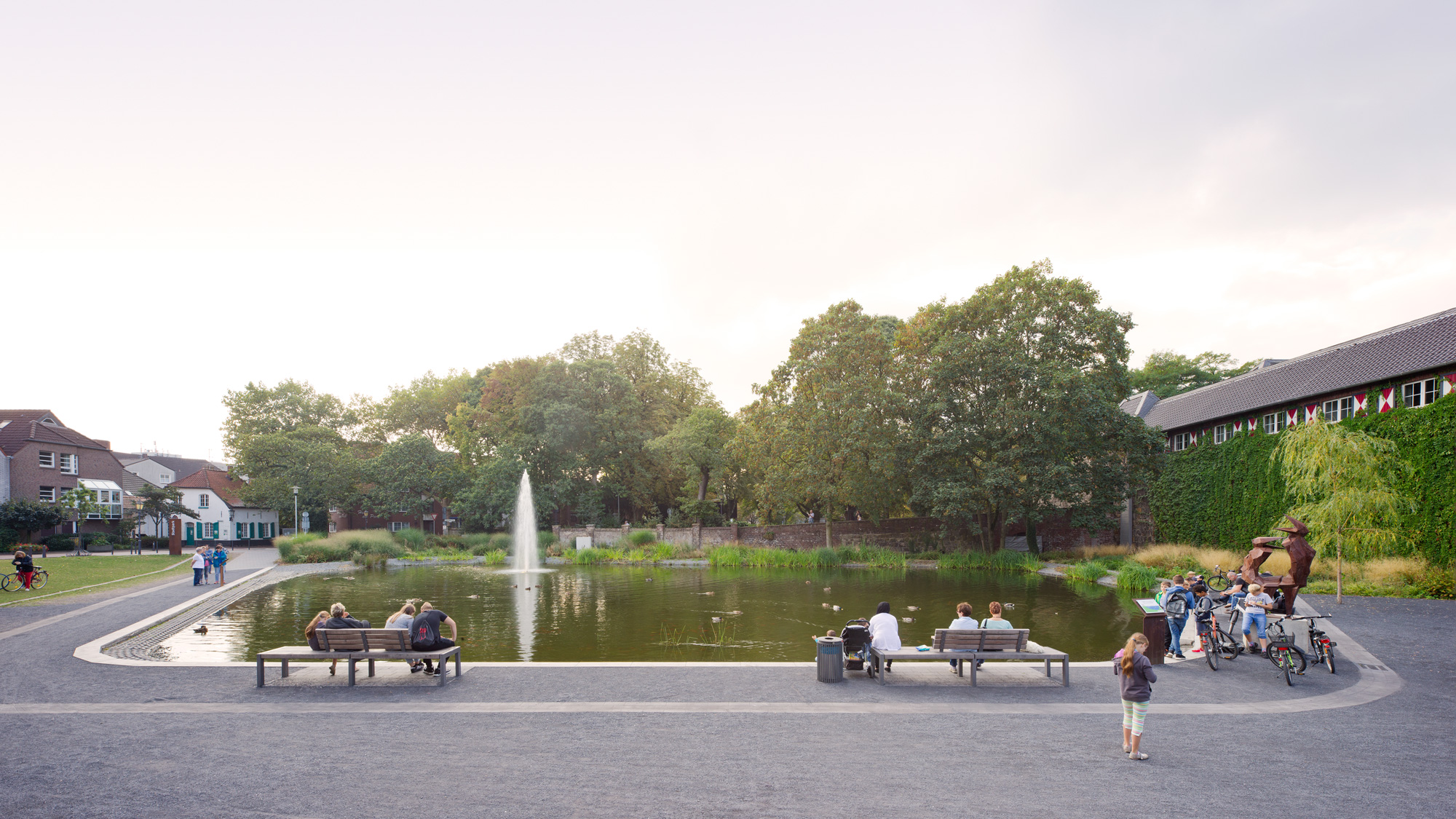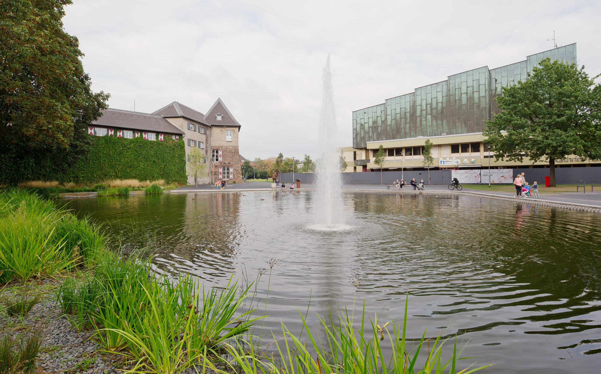 Der historische Stadtpark bildet zusammen mit dem Vorplatz von Rathaus und Kathrin-Türks-Halle und dem Ententeich den größten und wichtigsten innerstädtischen Freiraum mitten in Dinslaken.