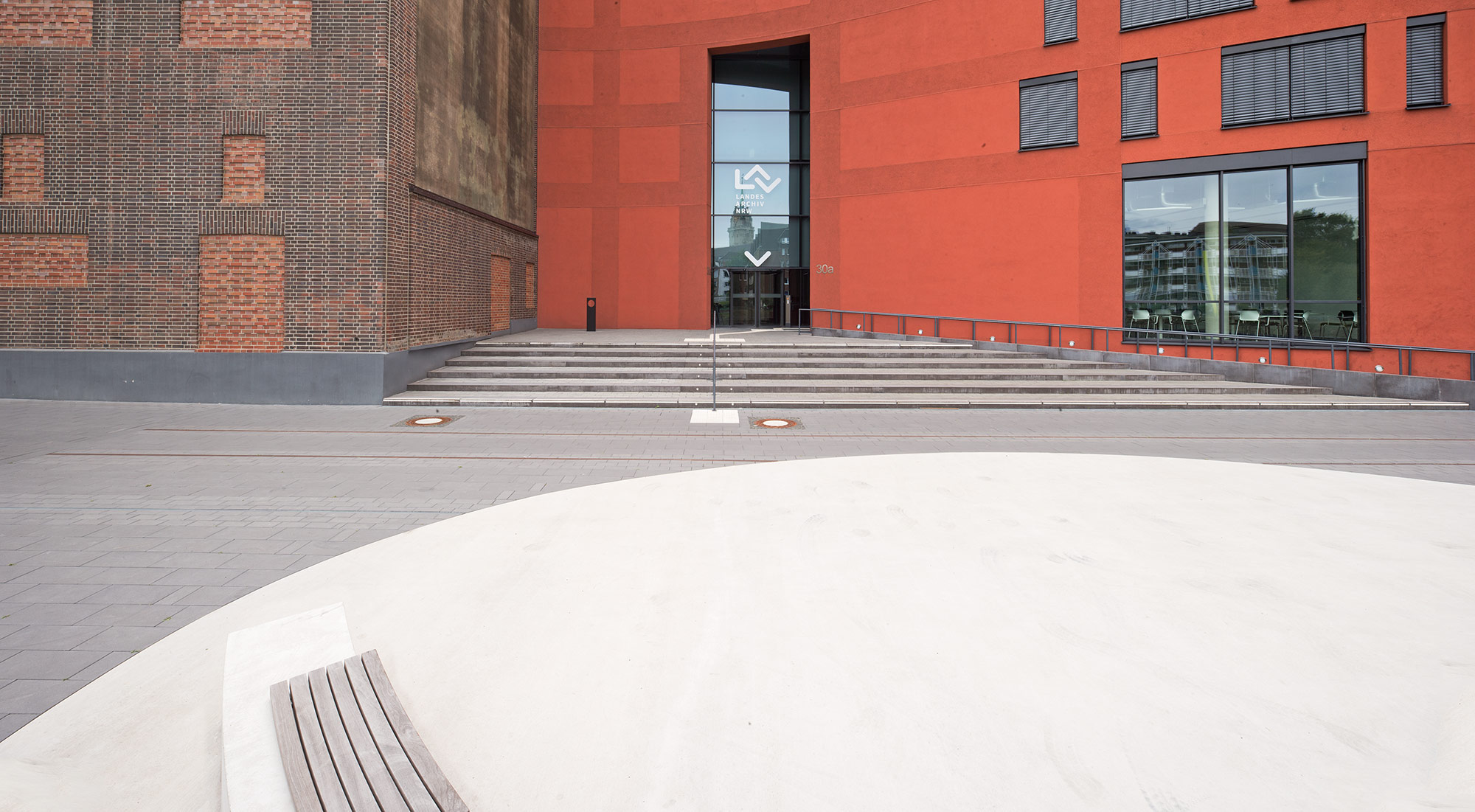 Mittelpunkt dieses Promenadenabschnittes ist die „eiförmige“ Platzfläche am Haupteingang des Landesarchivs.