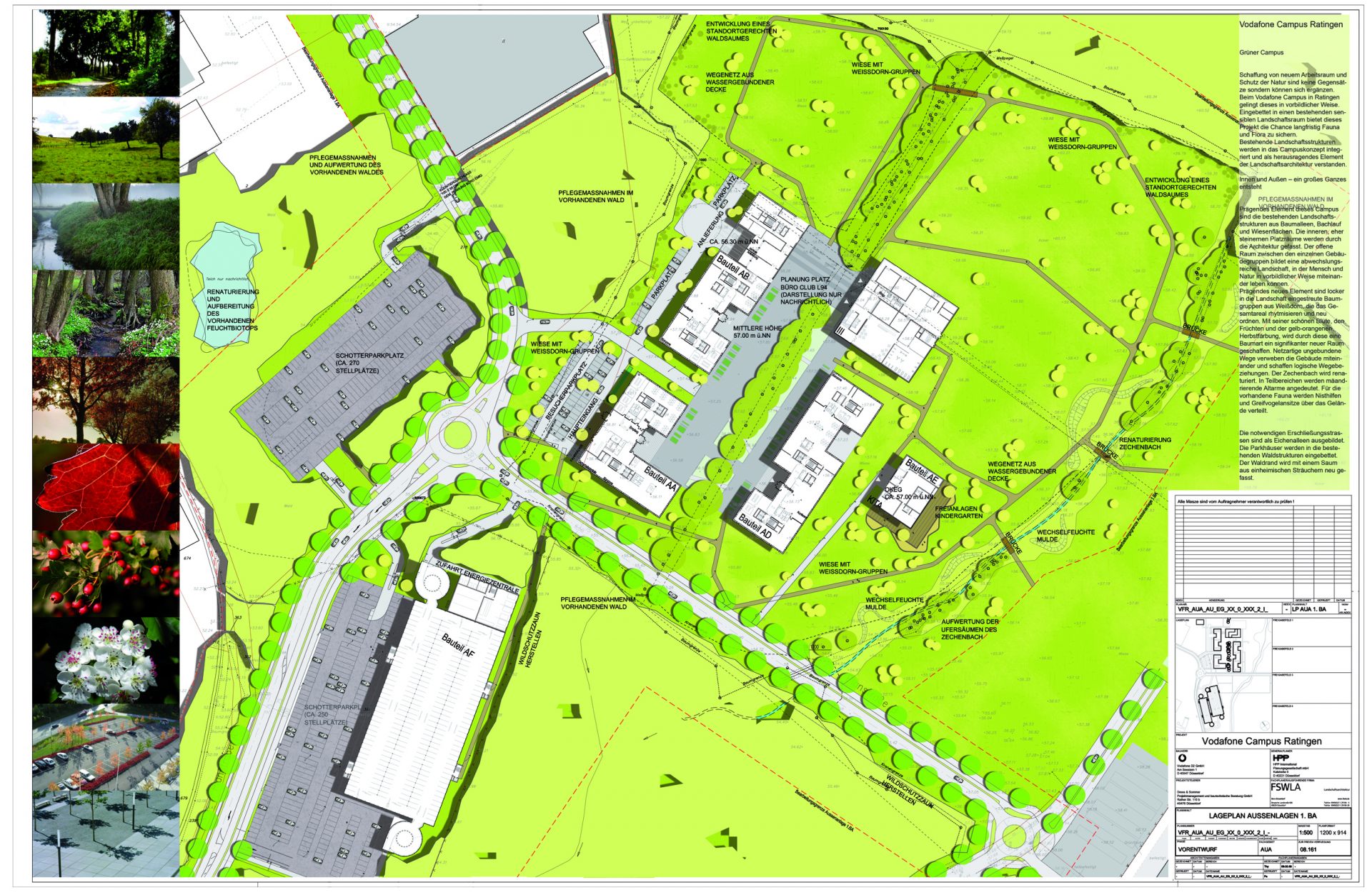 Schaffung von neuem Arbeitsraum und Schutz der Natur sind keine Gegensätze, sondern können sich ergänzen. Beim Vodafone Campus in Ratingen gelingt dieses in vorbildlicher Weise. Eingebettet in einen bestehenden sensiblen Landschaftsraum bietet dieses Projekt die Chance einer langfristigen Sicherung von Fauna und Flora. Bestehende Landschaftsstrukturen werden in das Campuskonzept integriert und als herausragendes Element der Landschaftsarchitektur verstanden.