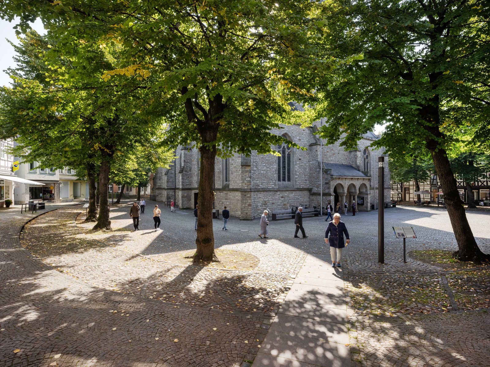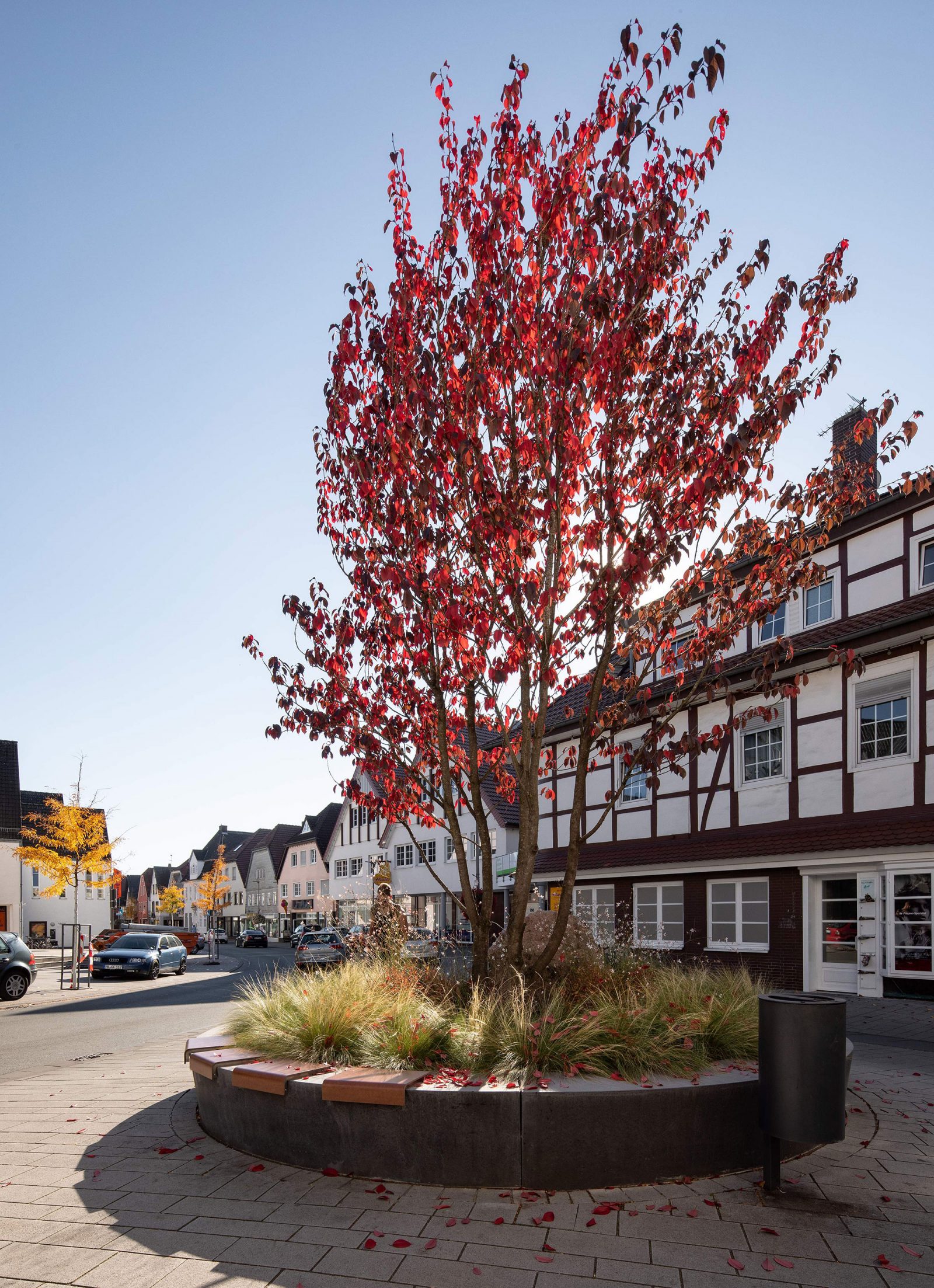Innerhalb des Entwurfsbereiches sollten einzelne Orte „eigener Identität“ gestaltet werden. Hier rücken insbesondere die bestehenden Plätze wie der Alte Markt und der Kirchplatz, aber auch neu gewonnener Raum wie an der Volksbank, vor der Thülecke, der Oststraße und der Himmelreichsplatz in den Fokus. Besondere Spiel- und Sitzgelegenheiten sowie ein besonderer Platzbaum schaffen Identität und Aufenthaltsqualität. Einseitig gesetzte Straßenbäume bilden eine klare Linie entlang der Straße.