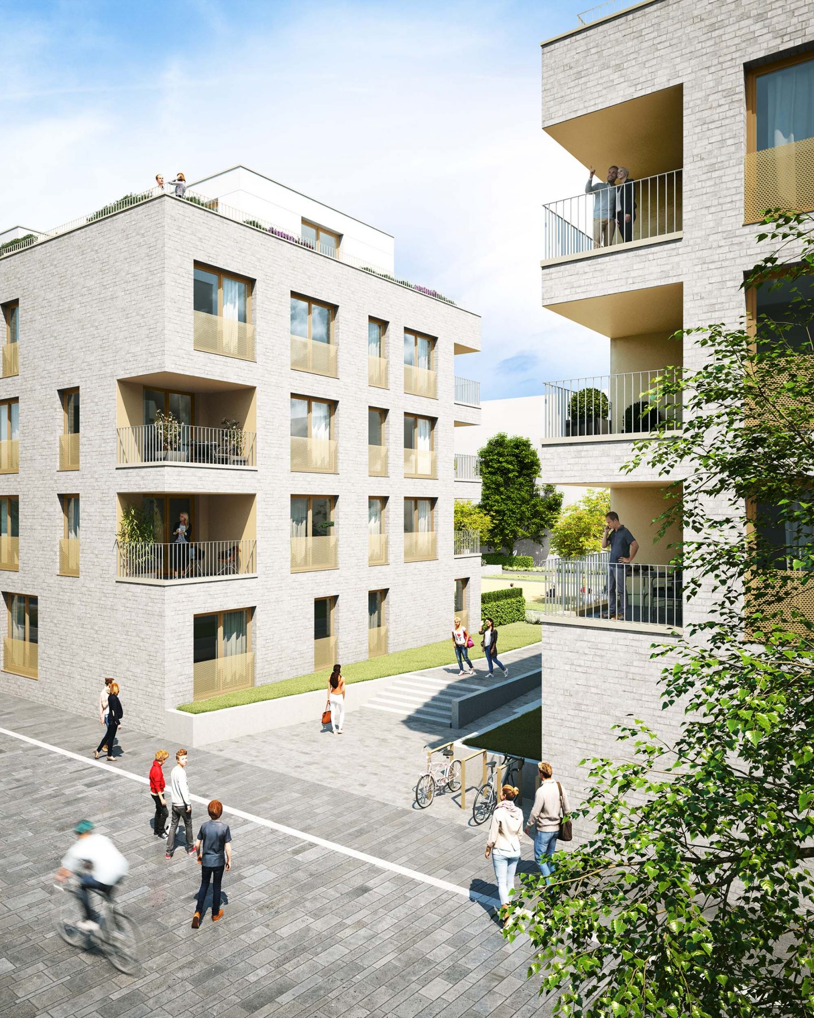 Intention der Entwurfsverfasser ist es, einen qualitätvollen „Zwischenraum“ zu gestalten, in dem sich die Grenzen von privat und öffentlich als fließende Übergänge ergeben.
