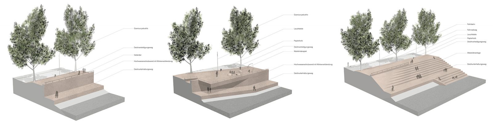 Mit der Neugestaltung des Uferbereiches wird sich nach Jahrzehnten der Raum entlang der Weser wesentlich verändern. Durch die Erneuerung und die Notwendigkeit der Verbesserung des Hochwasserschutzes entsteht ein neues, anderes Ufer, dessen skulpturales Erscheinungsbild diesen Ort nachhaltig prägen wird.