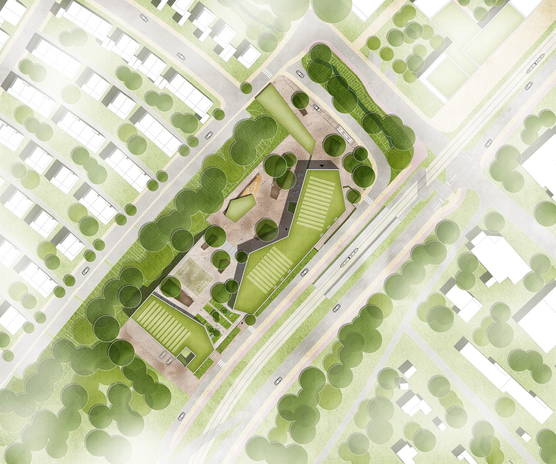 Vielfältige und abwechslungsreiche Freianlagen fördern das Lernen. Daher wird der Außenraum der neuen Grundschule als Erlebnisraum für die Schüler*innen gestaltet.