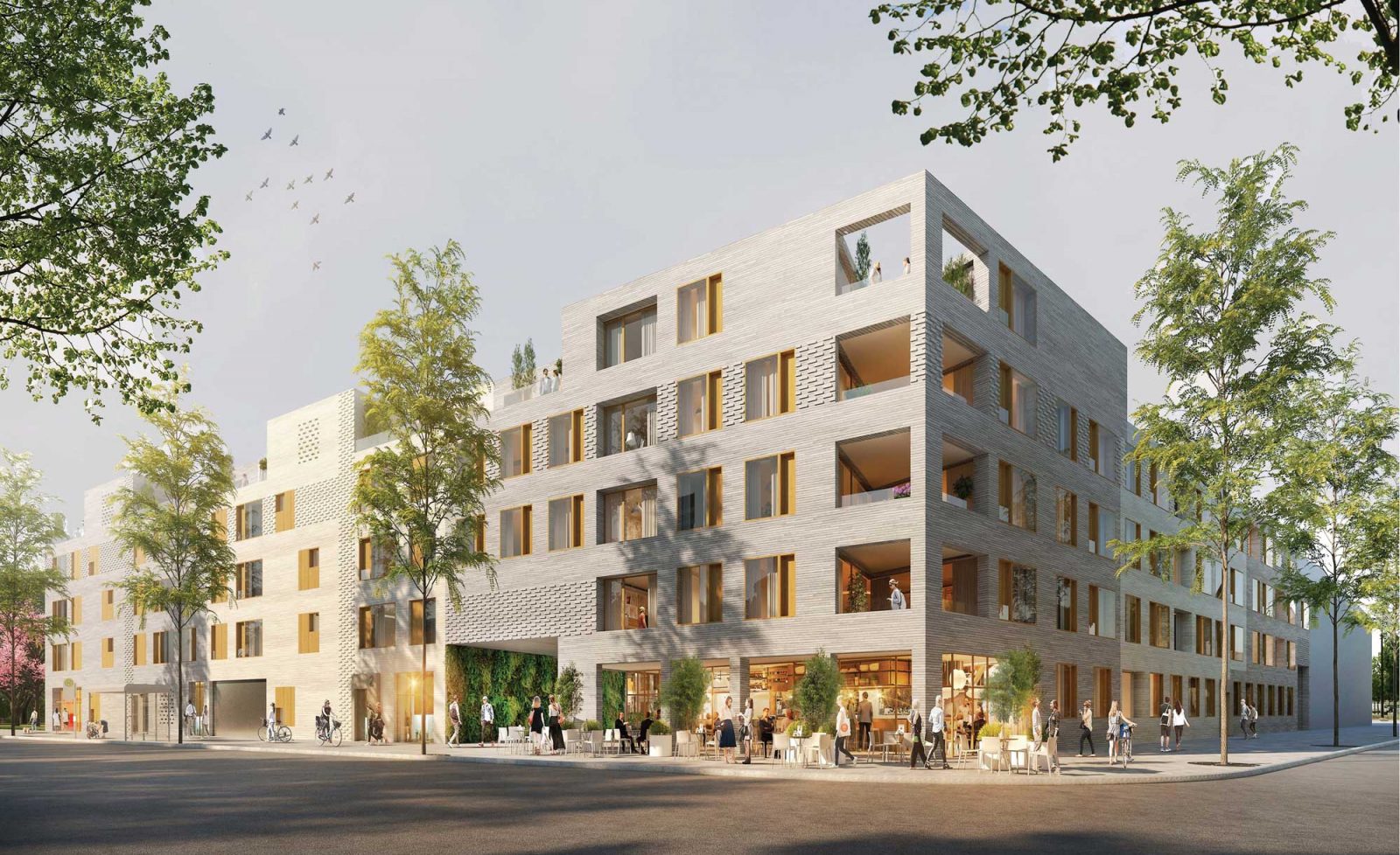 Die erdgeschossigen Garten- bzw. Terrassenflächen im Innenhof werden intensiv begrünt mit Hecken gegenüber den sich anschließenden öffentlichen Räumen abgegrenzt. Die Hauseingänge erhalten größere befestigte Freibereiche mit Abstellmöglichkeiten für die Fahrräder.