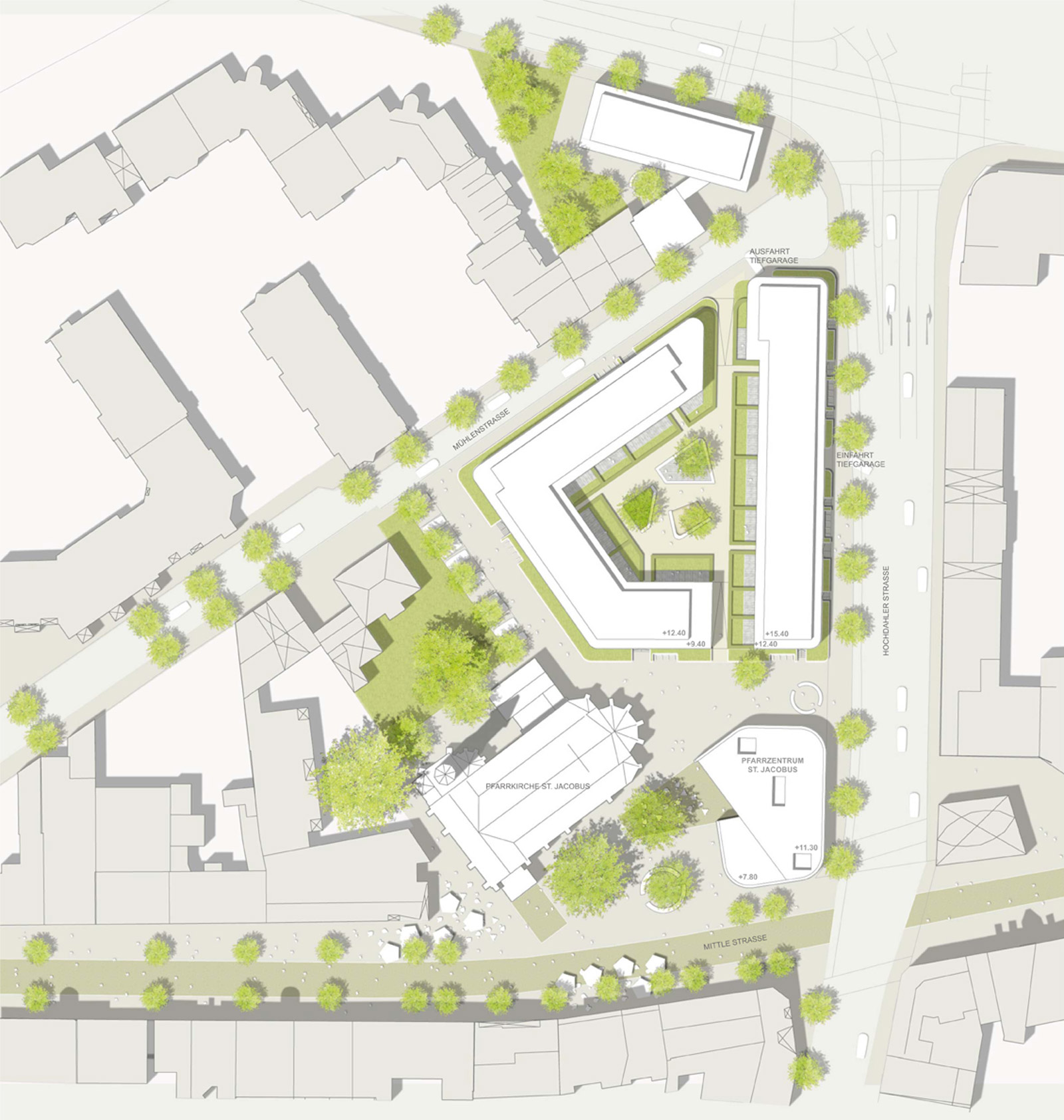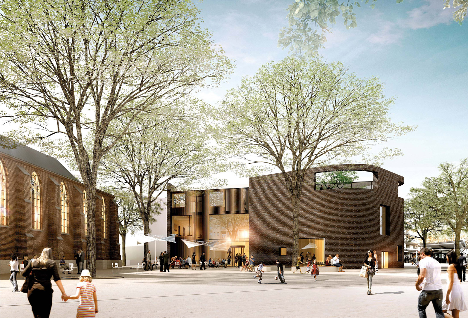 Durch die städtebauliche Neuordnung bekommt die St. Jacobus Kirche eine neue, multifunktionale Plattform.