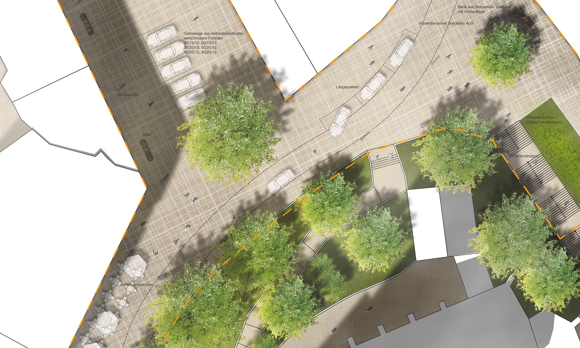 Ziel unseres Entwurfes ist es neue attraktive Freiräume zu schaffen, die modern, zeitlos und im historischen Kontext wie selbstverständlich diesen Bereich beleben.