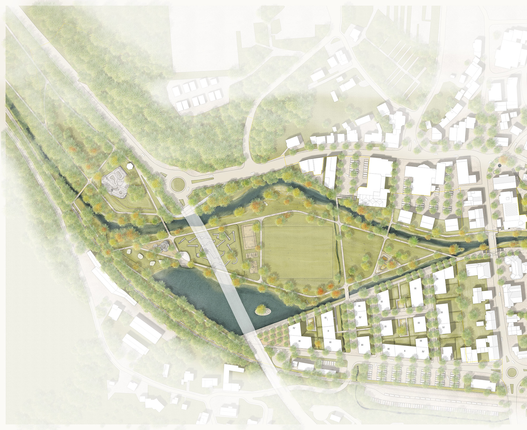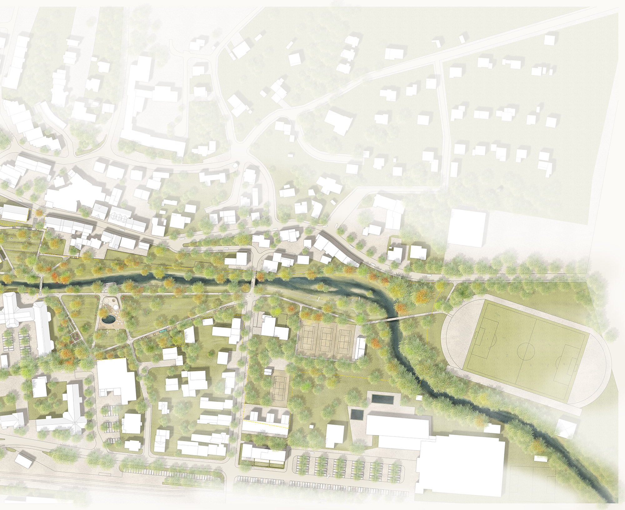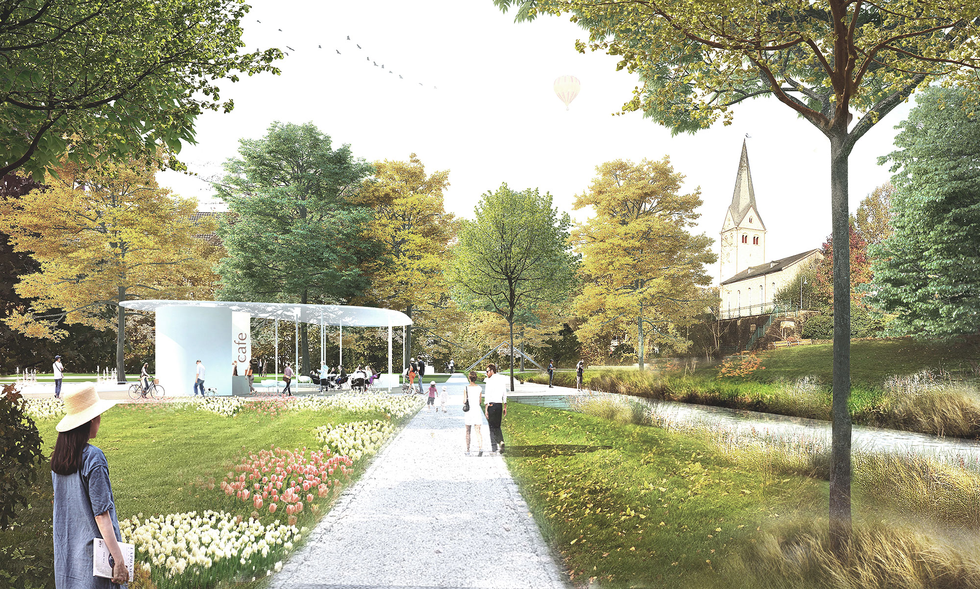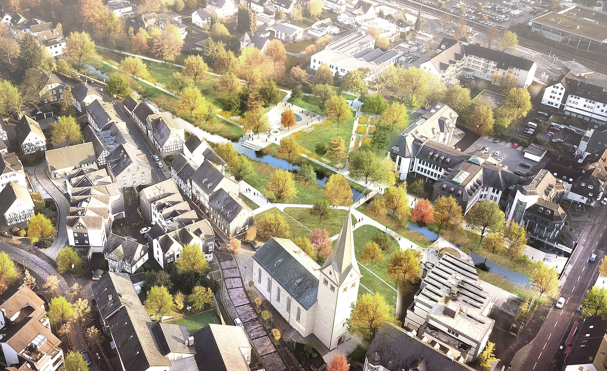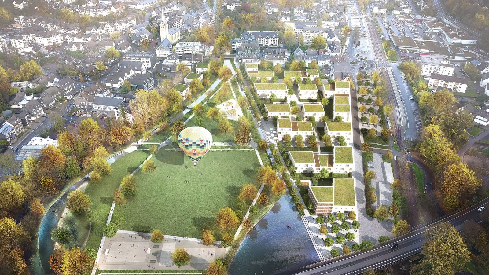Die drei Teilbereiche der neuen Landschaftsachse befriedigen dabei unterschiedliche Bedürfnisse. Ein neues Stadtquartier sowie kleinere Interventionen im Stadtraum schaffen attraktivere Lebensräume und neue Bauflächen mitten in der Stadt. Die Wiehl wird naturnaher umgestaltet und zum lebenswerten und identifikationsstiftenden Mittelpunkt der Stadt.