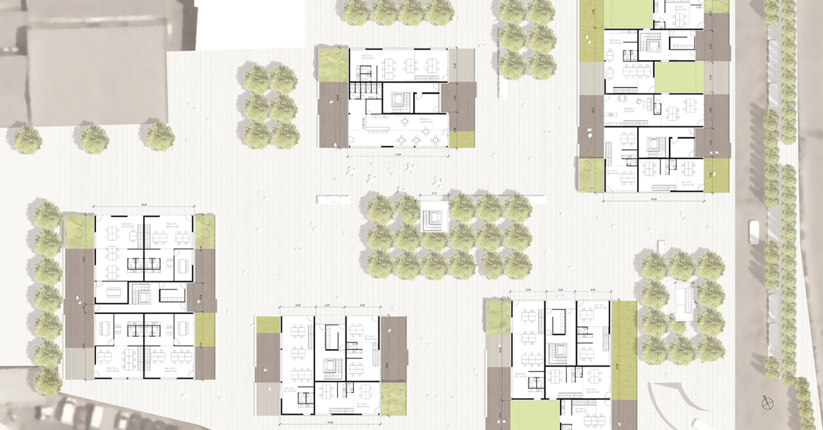 Das Ziel des Entwurfes ist, die Vielfalt der Nachbarschaft als Eigenschaft des Quartiers fortzuführen und dabei einen autofreien, großzügigen, öffentlichen Raum zu schaffen, der aber Rücksicht auf Individualität nimmt. Die Architektursprache soll diese Vielfalt ausdrücken.