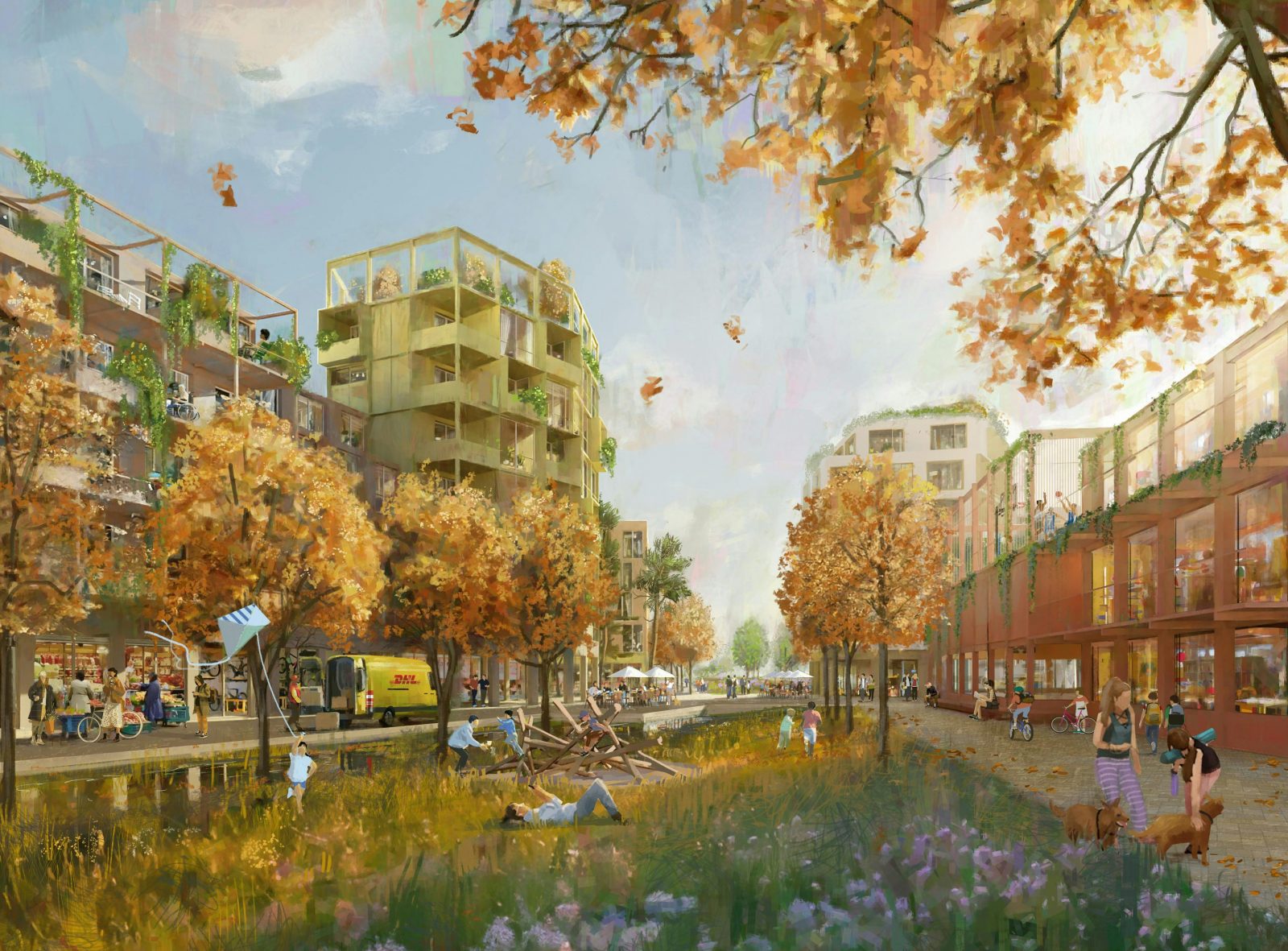 Die Idee einer BaumStadt betrachten wir als „echtes Leitbild“, das durch seinen prozesshaften und offenen Charakter überzeugt. „Baum“ wird als Metapher für eine starke grüne Gestaltung gewertet. Wo sonst Autos parken, stehen hier Bäume. Wo sonst Autos fahren, spielen hier Kinder. Wo sonst Stadt Landschaft verdrängt, ist hier Koexistenz zwischen Menschen, Flora und Fauna möglich. Ein zirkuläres Ökosystem entsteht.