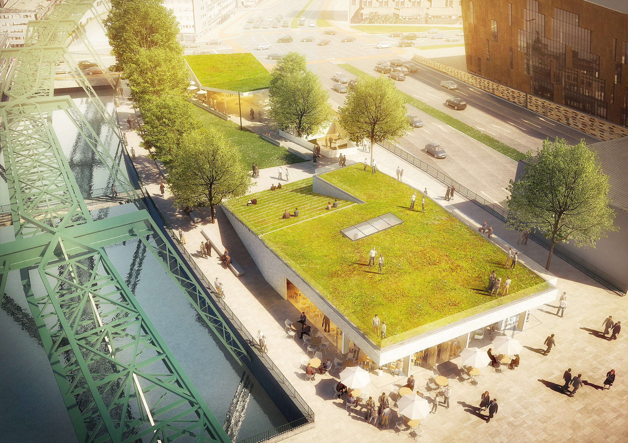 Mitten im Wuppertal entsteht an zentraler Stelle in der Innenstadt zwischen der alten Freiheit und der Morianstraße ein kleiner Freiraum – der Wupperpark. Zentraler Entwurfsansatz ist es, Gebäude und Landschaft miteinander zu verweben und über die Begrünung und teilweisen Benutzung der Dächer ein Gesamtensemble zu schaffen.